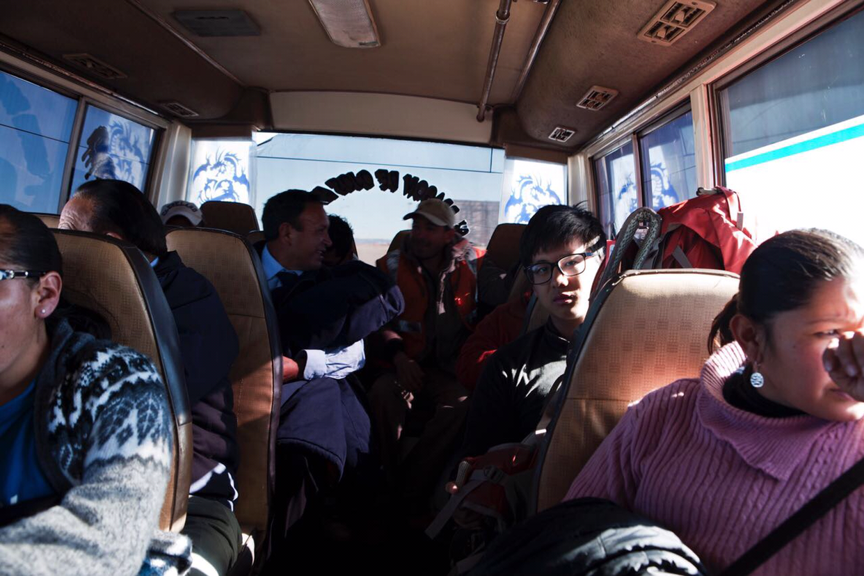 막차 버스 안인데 관광객은 우리 둘 뿐이다. 이 버스가 왜 막차인고 하니 오늘 더 이상 공항에 내리는 뱅기도 없고 떠나는 뱅기도 없어서 공항문닫고 일하는 직원들 전부 퇴근하기 때문이다. 같이 뱅기로 유유니에서 내린 관광객들은 전부 택시로 먼저 시내로 들어간 것 같다.