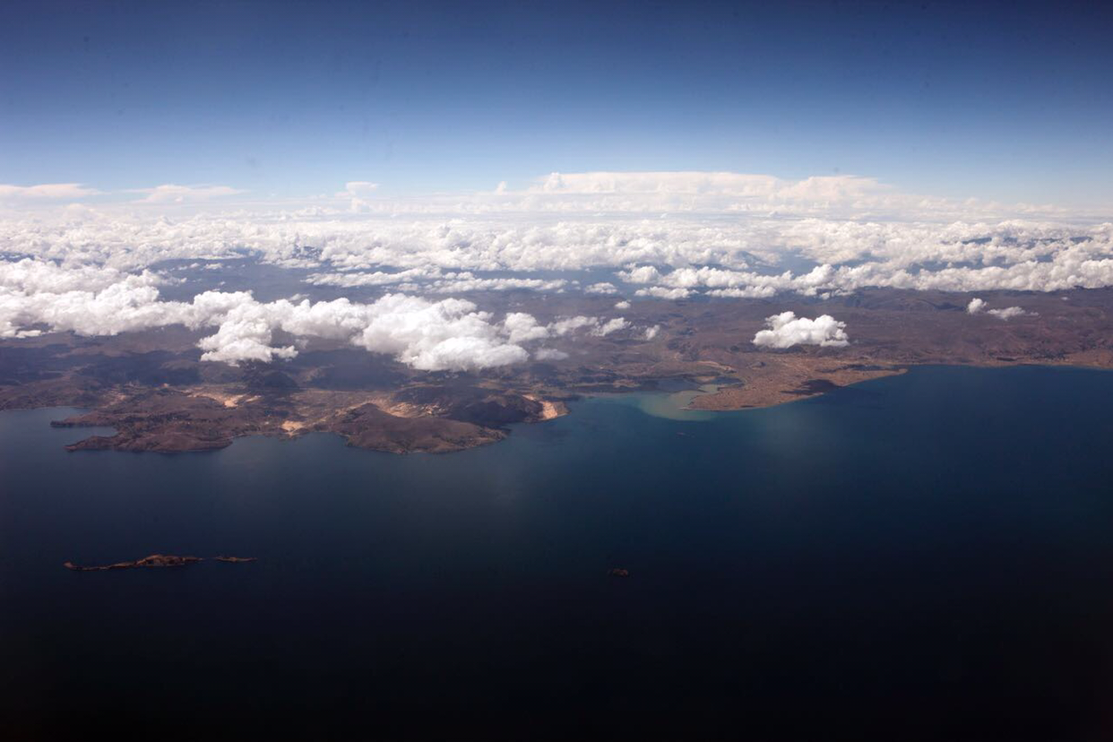 위에서 보니 깊이에 따라 물색이 다르다. 이 호수 면적이 얼마가 되는지 찾아보지는 않았지만 중앙을 경계로 페루와 볼리비아가 공유하고 있다.