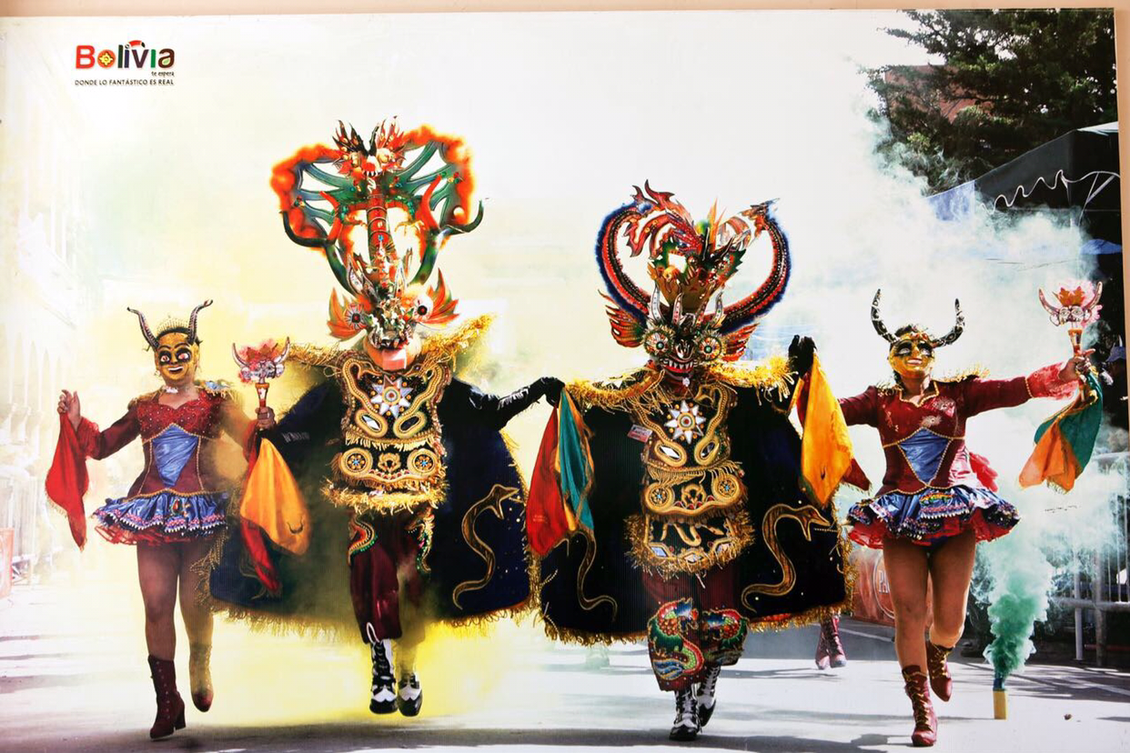 공항 안에 있는 관광포스트. 가면축제 행사인 것 같다.