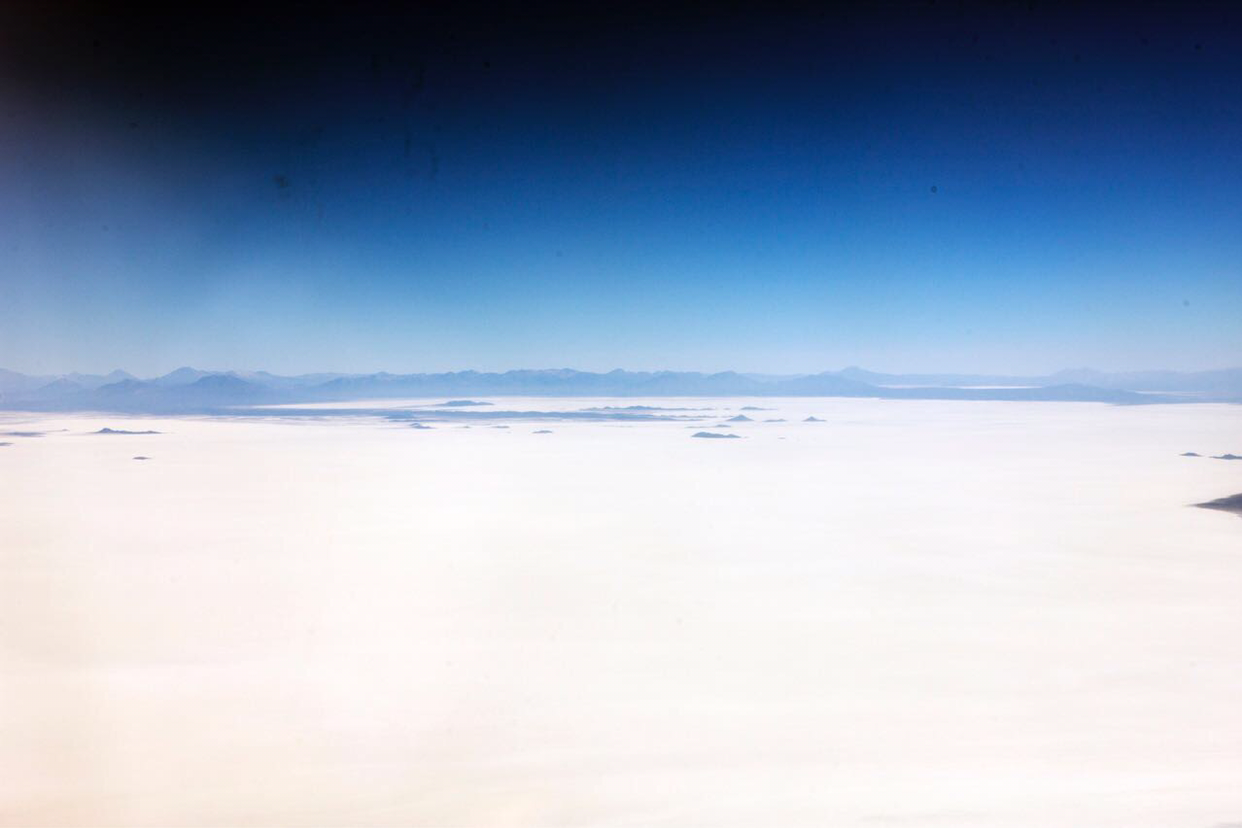 여기서도 운좋게 하늘에서 유유니 소금사막을 바라볼 수 있었다. 저 하얀부분이 소금사막이고 지프로 투어하는 곳이라고 한다. 재수좋은 날이다. 하늘에서 티티카카 호수도 보고 유유니 소금사막까지 볼 수 있다니.