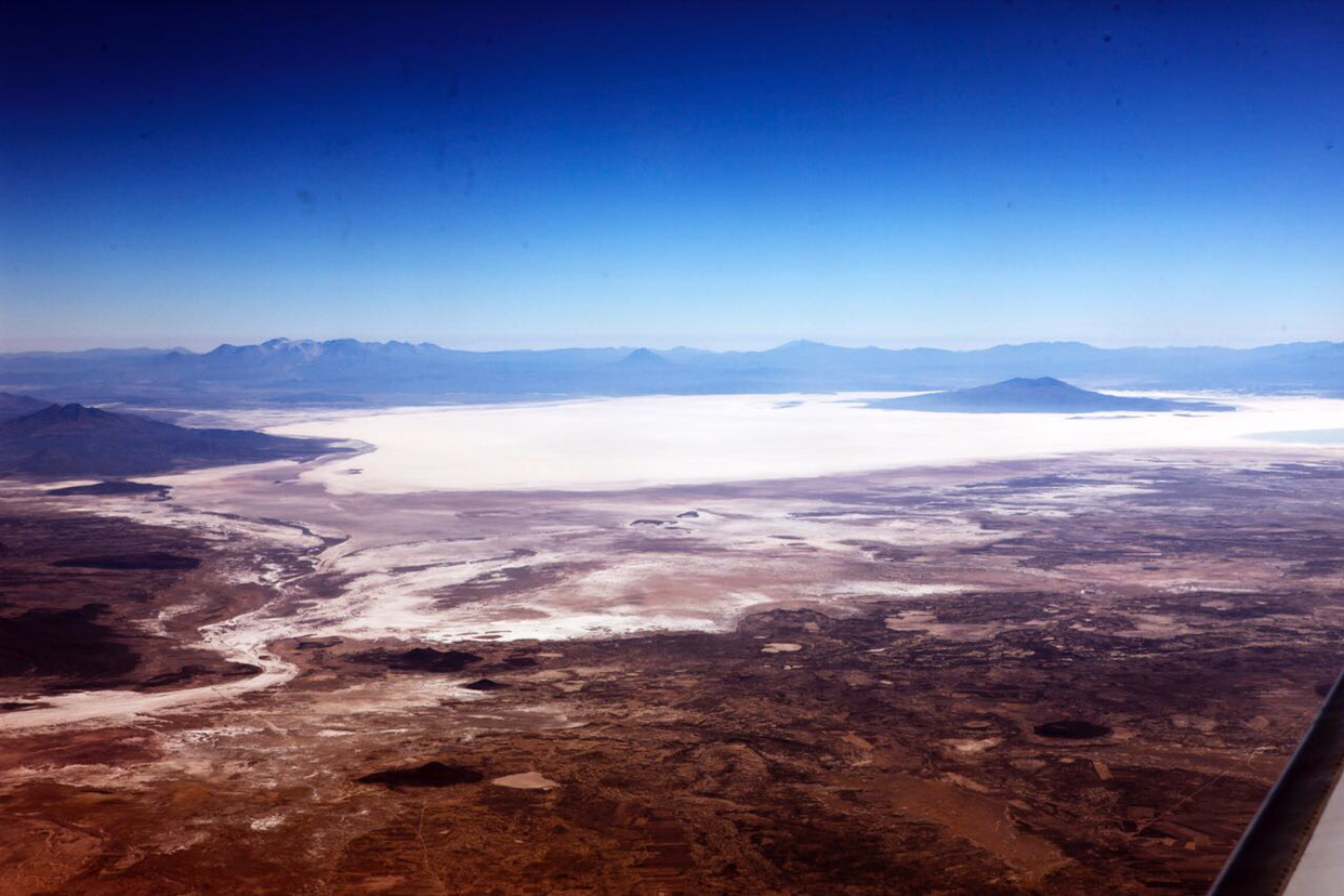 라파즈에서 이륙한 뱅기는 승객 18명 정도를 싣고 남쪽으로 기수를 돌려 유유니로 향하였다. 얼마가지 않아 큰 호수가 나오는데 티티카카 호수는 아니고 다른 호수다. 이곳에도 저런 큰 호수가 여기저기 산재해 있다.