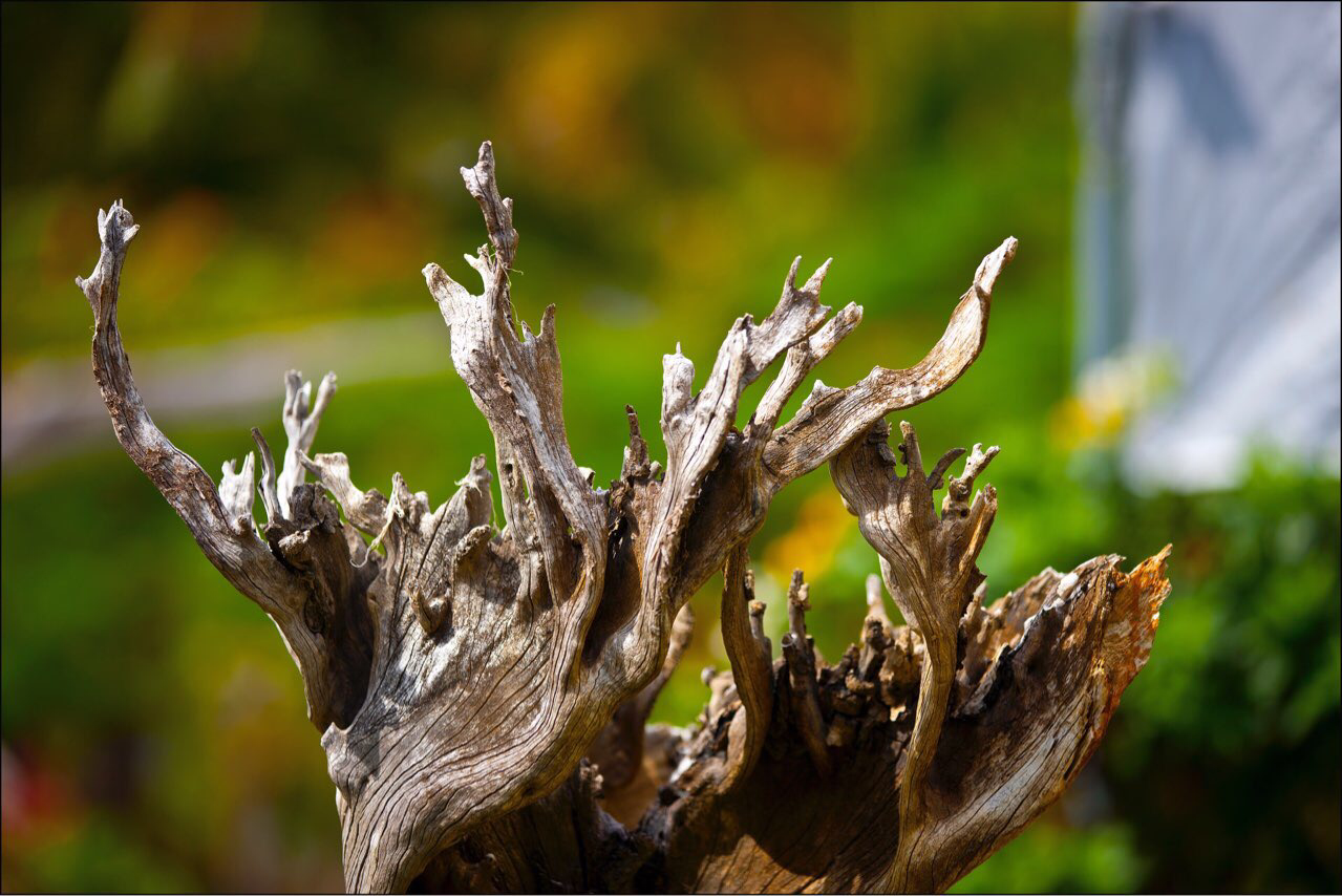 마가렛의 정원을 좀 더 찬찬하게 살펴보고자 한다. 무슨 보물찾기하는 것 같다. 건성으로 보면 아무 것도 안 보이고, 대신 보물찾기하듯 뒤져보면 무엇인가 보인다. 마가렛말로는 4년전 이사올 때는 정원이 휑하니 텅 비었는데 4년동안 자기가 재조성했단다. 아기자기하게 운치있게 꾸며 놓았다. 해변에서 주워 모은 DRIFT WOOD를 거꾸로 박아 세워 놓았다. 그러니 원래 나무의 말라 비틀어진 뿌리 부분이 기묘한 모습으로 다가온다. 작은 것들부터 대빡으로 큰 것 까지 여러 종류가 있다.