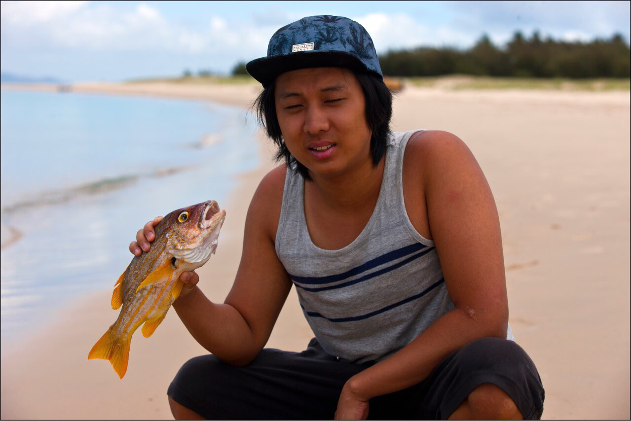 섬에서 아침을 맞았다. 새벽에 낚시를 따라 나서겠다는 모델 K의 계획은 저 파도의 거품처럼 사그러졌다. 새벽에 시간을 맞추어 일어나지 못했기 때문이다. 제드와 폴이 이른 새벽에 배를 타고 낚시를 나갔다고 마가렛이 알려준다. 지금쯤 돌아 올 시간이 됬다면서 해변으로 나가보자고 해서 따라 나섰다. 두 어부가 아침 햇살에 땀을 뻘뻘 흘리면서 돌아왔다. 고기 바구니를 들여다 보니 형형색색의 이쁜 고기들이 가득 들어있다. 이쁘게 생긴 고기들이 맛은 별로 없다고 하는데 우리는 정오쯤 떠나야 하니 그 맛을 어찌 알 수가 있으랴. 저녁에 마가렛 친구들이 오게 되어있어 저녁만찬 식탁에 오를 것이다.