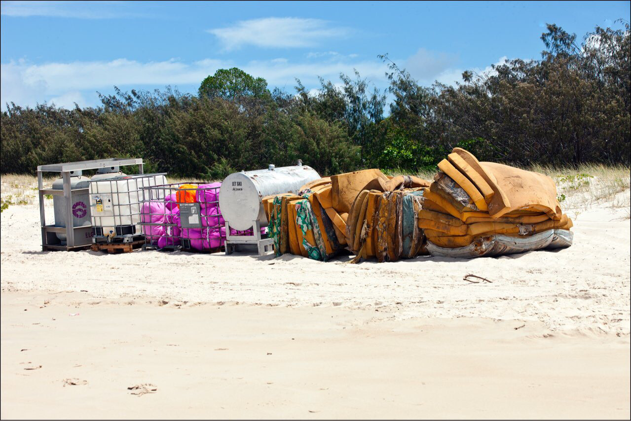12세대가 사는 섬에 쓰레기장이 없다. 집에서 나오는 쓰레기는 쓰레기통에 담아 해변에 갖다 놓으면 쓰레기통을 수거하는 배가 와서 뭍으로 운반해 간다고 한다. 버리는 매트리스와 같이 놓여진 개스통은 재충전을 하러 뭍으로 보내는 모양이다.
