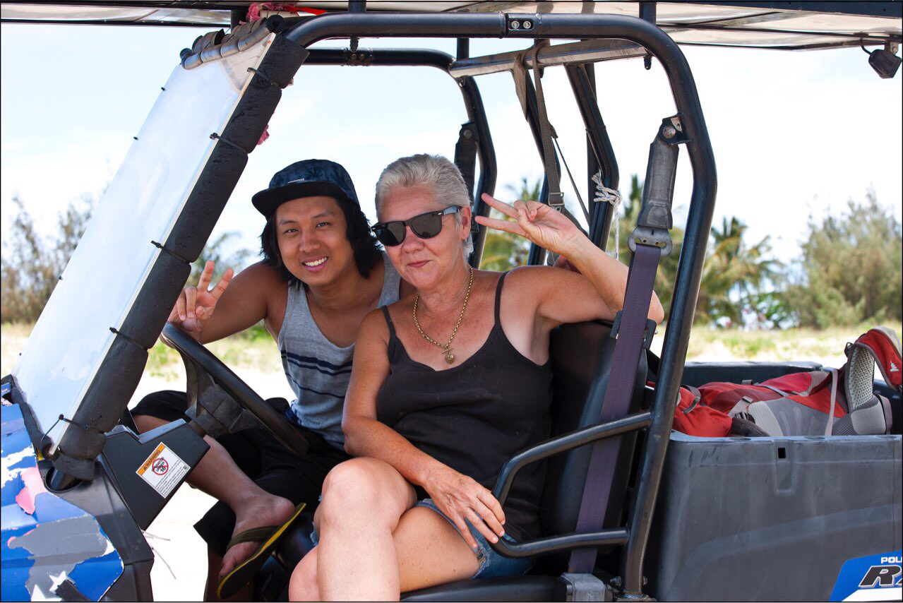 마가렛이 배타는데 까지 바래다 준다고 DUNE BURGY를 태워 준다. 배 떠날 시간이 아직 많이 남아 있다고 듄버기를 타고 섬 왼편 끝을 돌아서 다른 해변까지 보여준다. 섬 왼편쪽을 돌아 가보니 그곳은 바위들로 무성하다. 얕은 수심의 해변은 넓직하게 퍼져있는데 모래대신 작은 돌들로 가득하다. 돌로 가득한 해변에는 맑은 시냇물이 군데 군데 바다로 흘러 들고 있다. 그래서 그런지 바닷물이 다른 곳보다 더욱 더 청청한 것 같다.