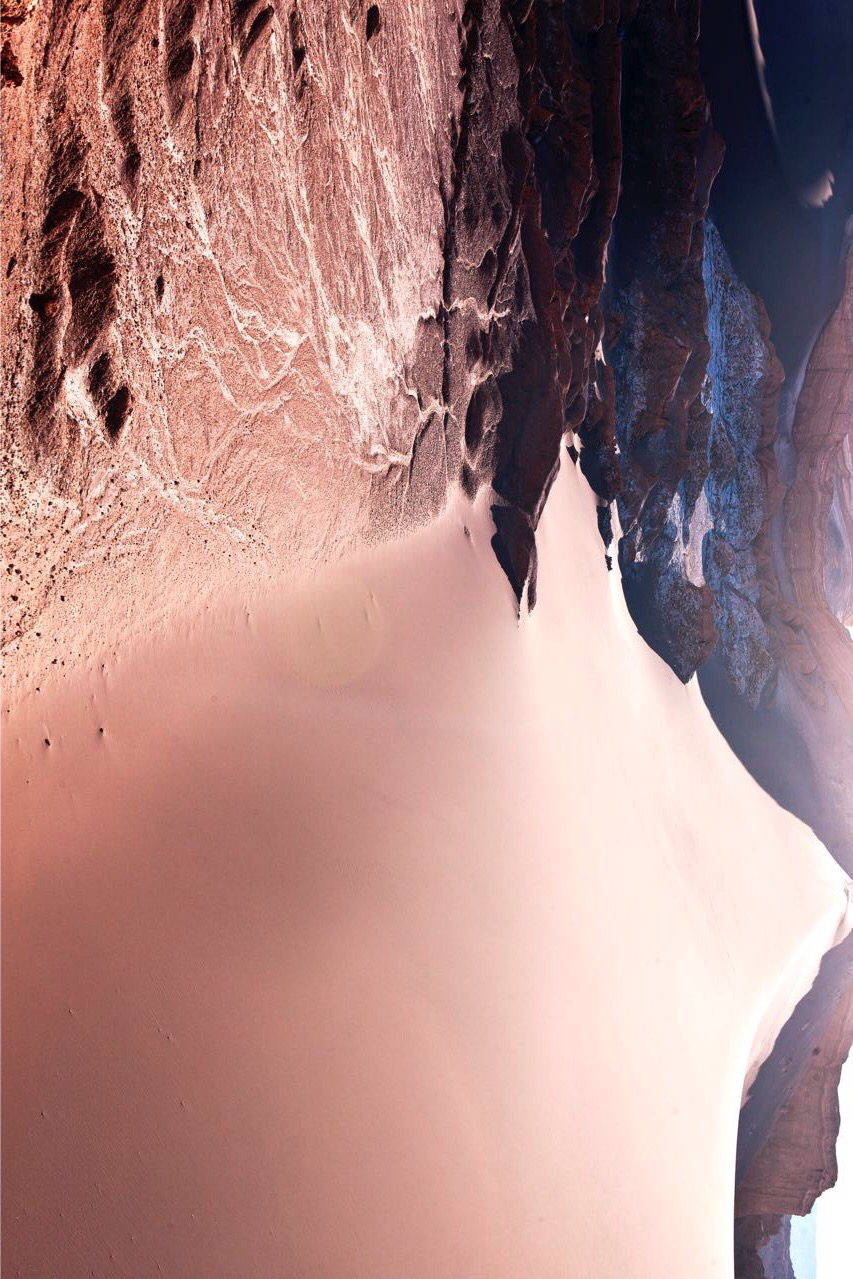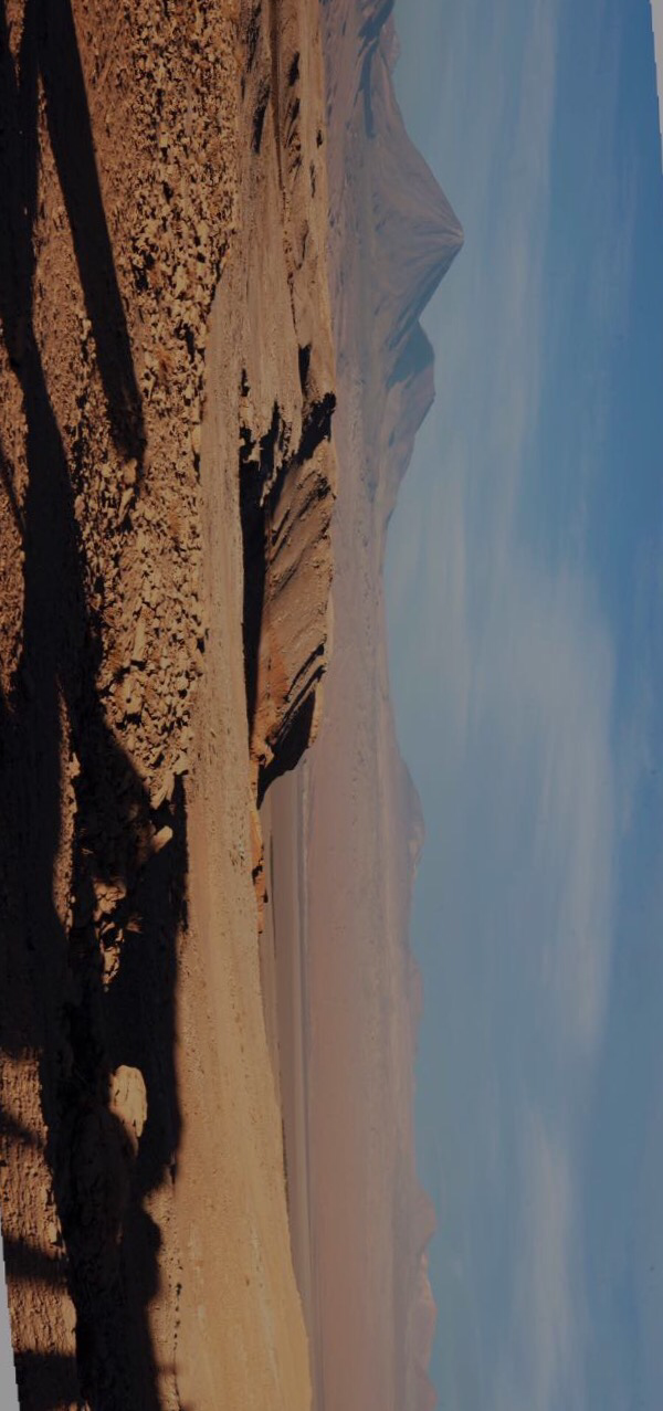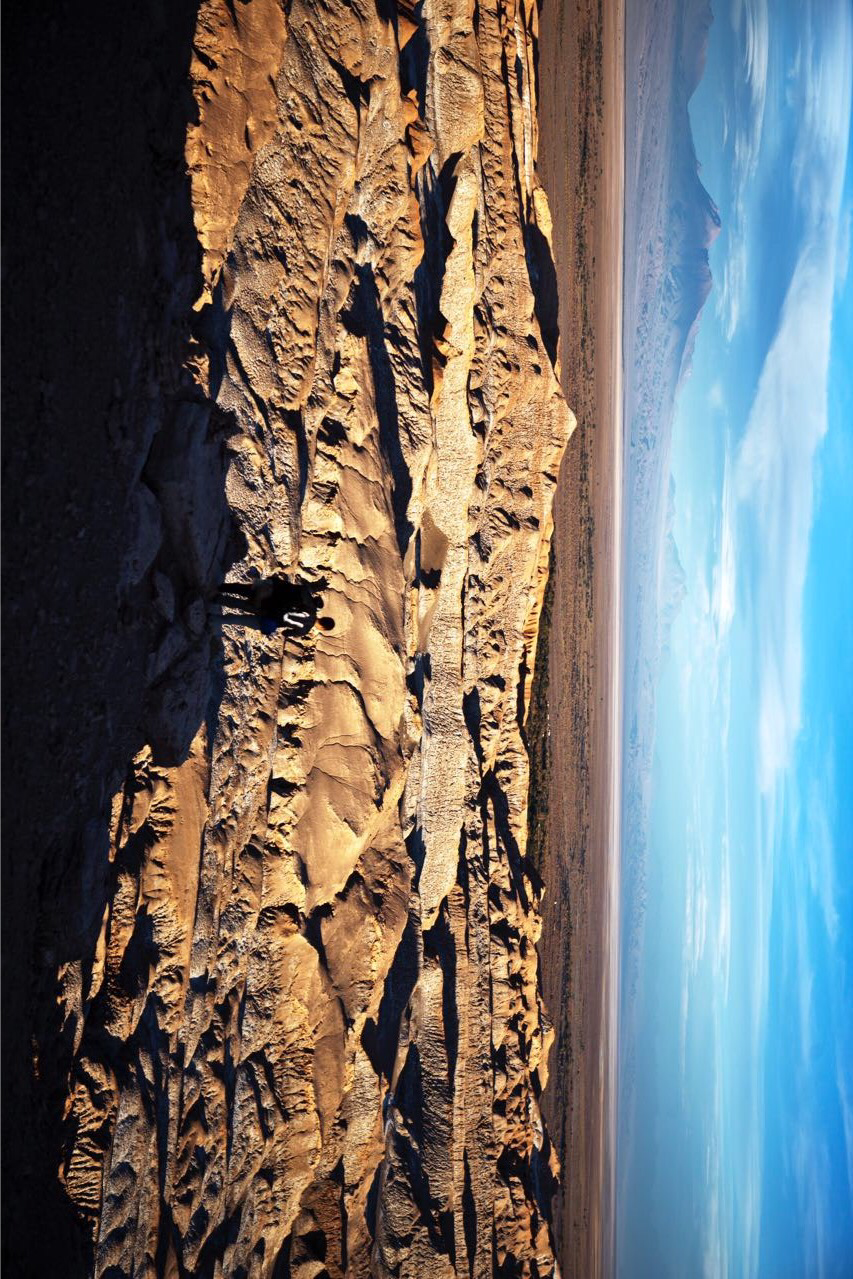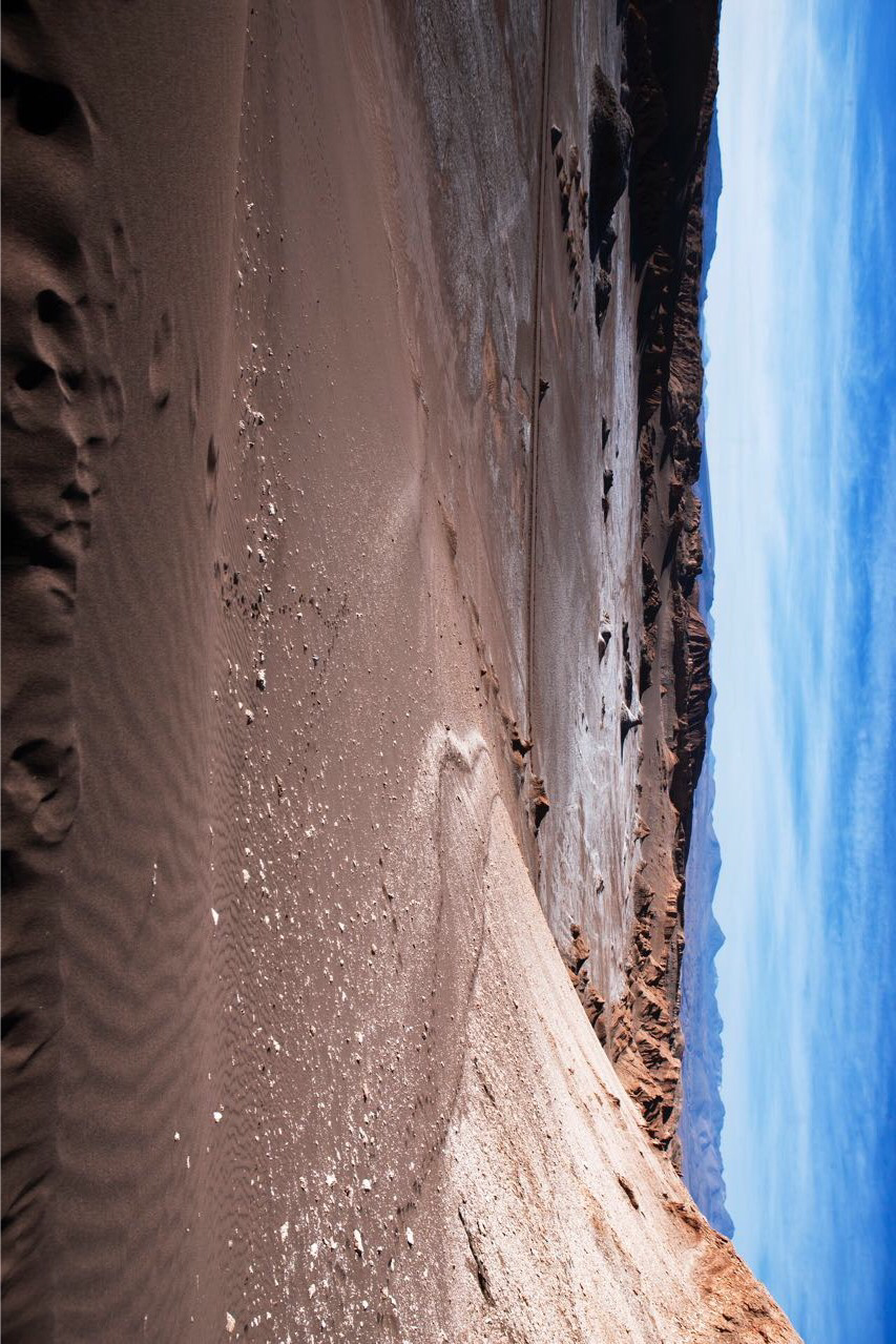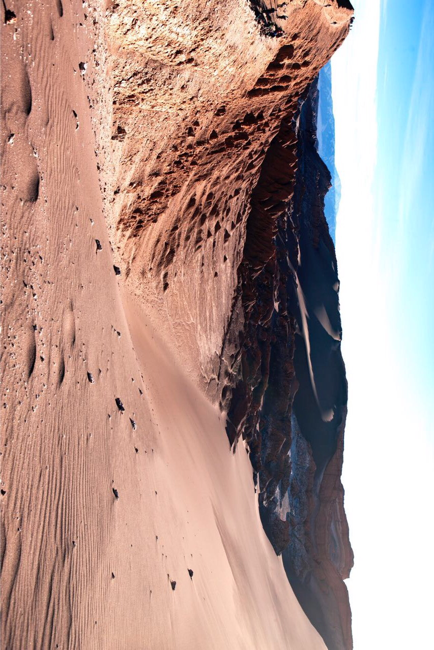 사막지대와 바위지대가 붙어있다. 좀 더 젊은 돌방구는 아직 모래로 변모하지는 않았지만 또 다른 시간이 쌓이고 쌓이면 저런 우람한 바위들도 고운 모래로 부서지게 되어 결국 보드라운 사막으로 변모할 것이다.
