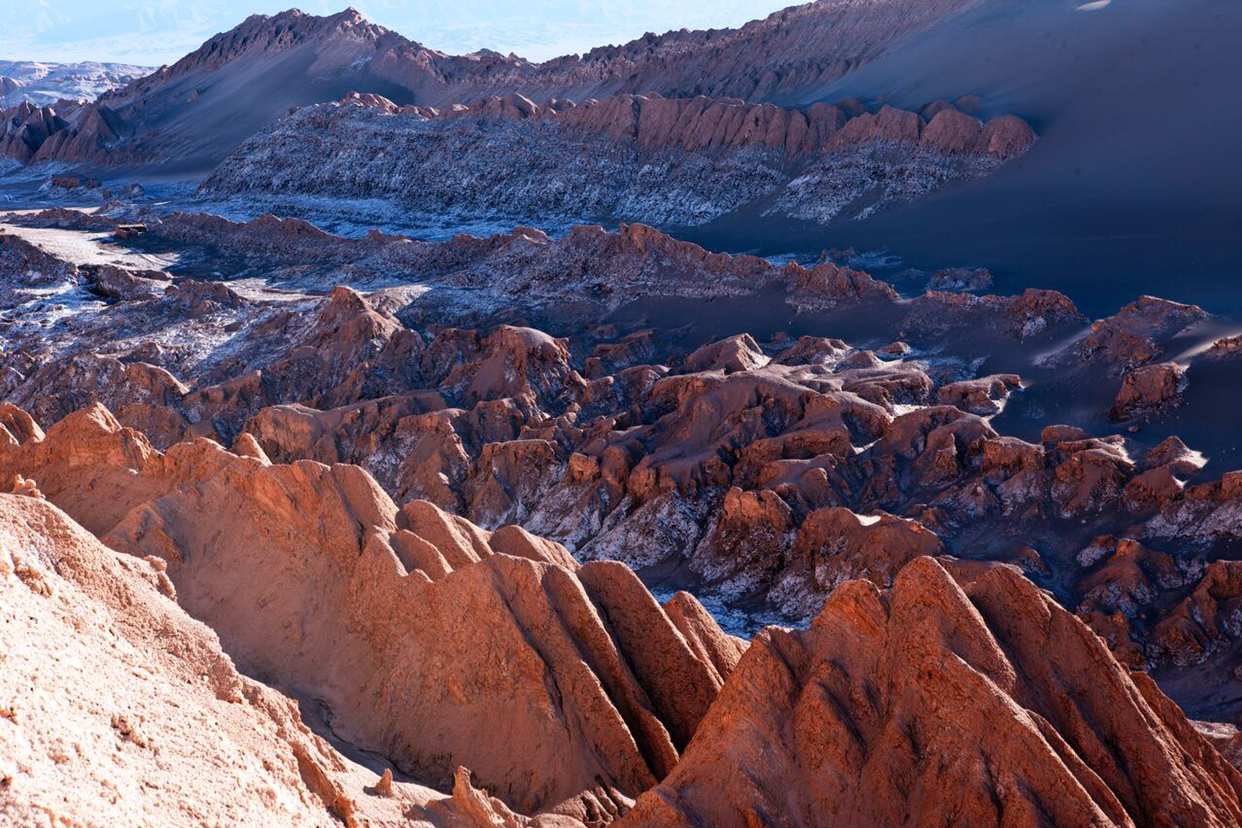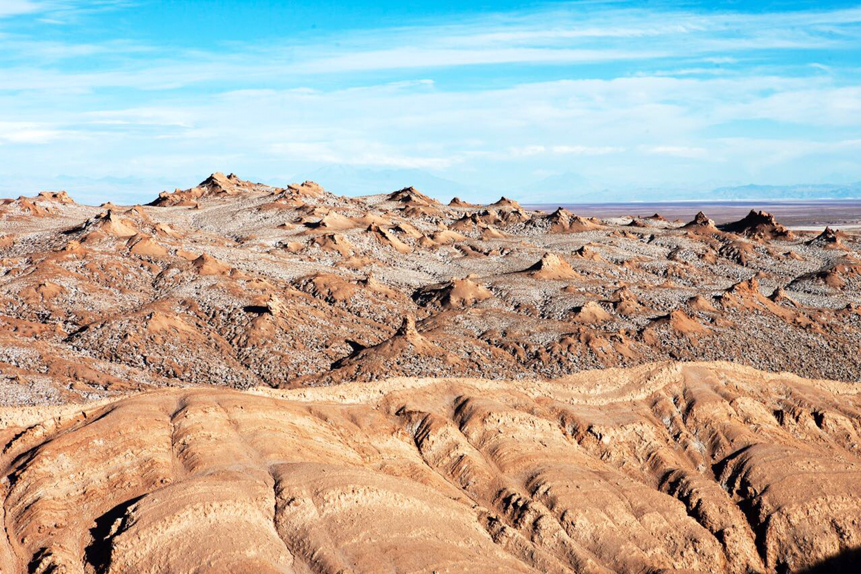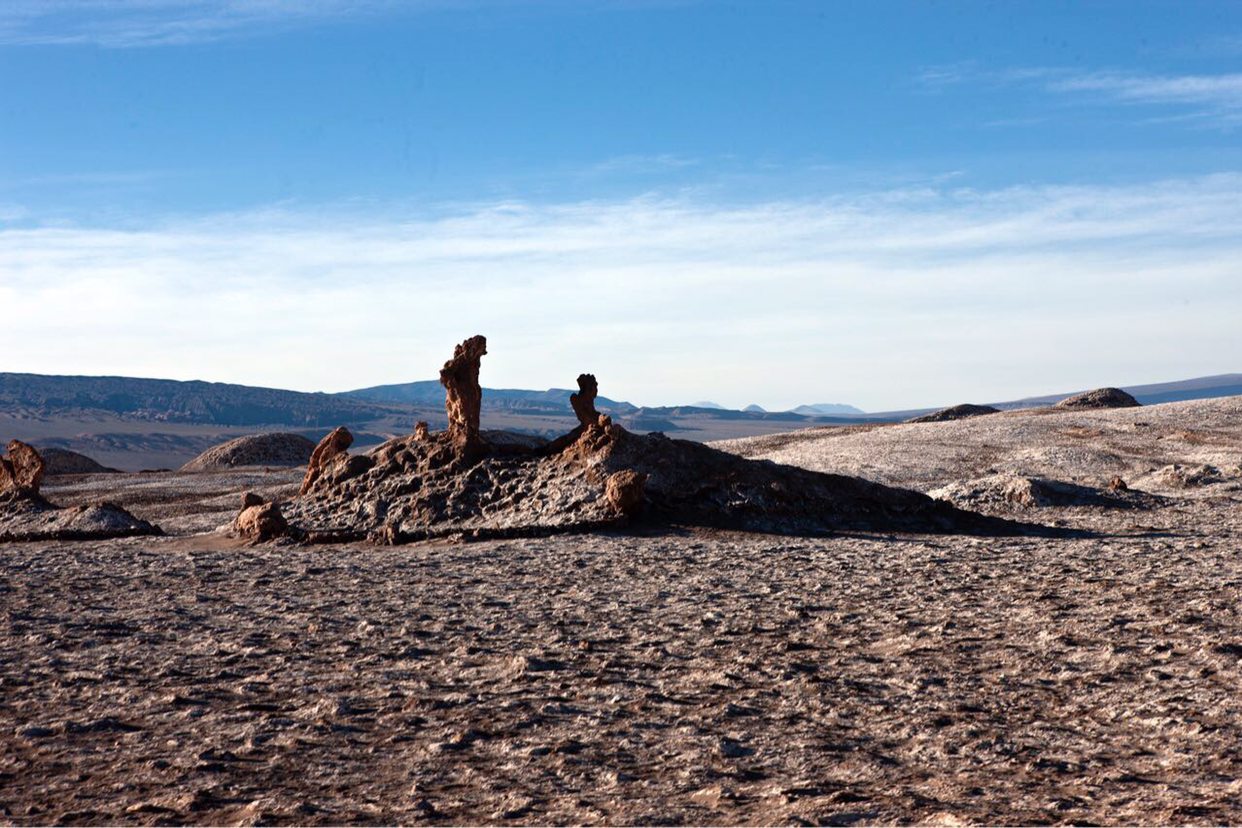 사막지대에 오랜 세월의 풍화침식 작용으로 지표의 바위들이 달의 분화구같이 형성되어 달의 계곡으로 부른다. 남미에는 여기말고 또 다른 달의 계곡이 있는데 볼리비아 수도 LA PAZ에 있다. 우린 라파즈를 경유해서 왔지만 바로 유유니로 갔기 때문에 라파즈에서 구경할 기회는 없었지만 라파즈에서 달의 계곡을 보고 온 김형기씨에 의하면 규모나 풍치가 여기 칠레 것보다 좀 떨어진다고 한다.