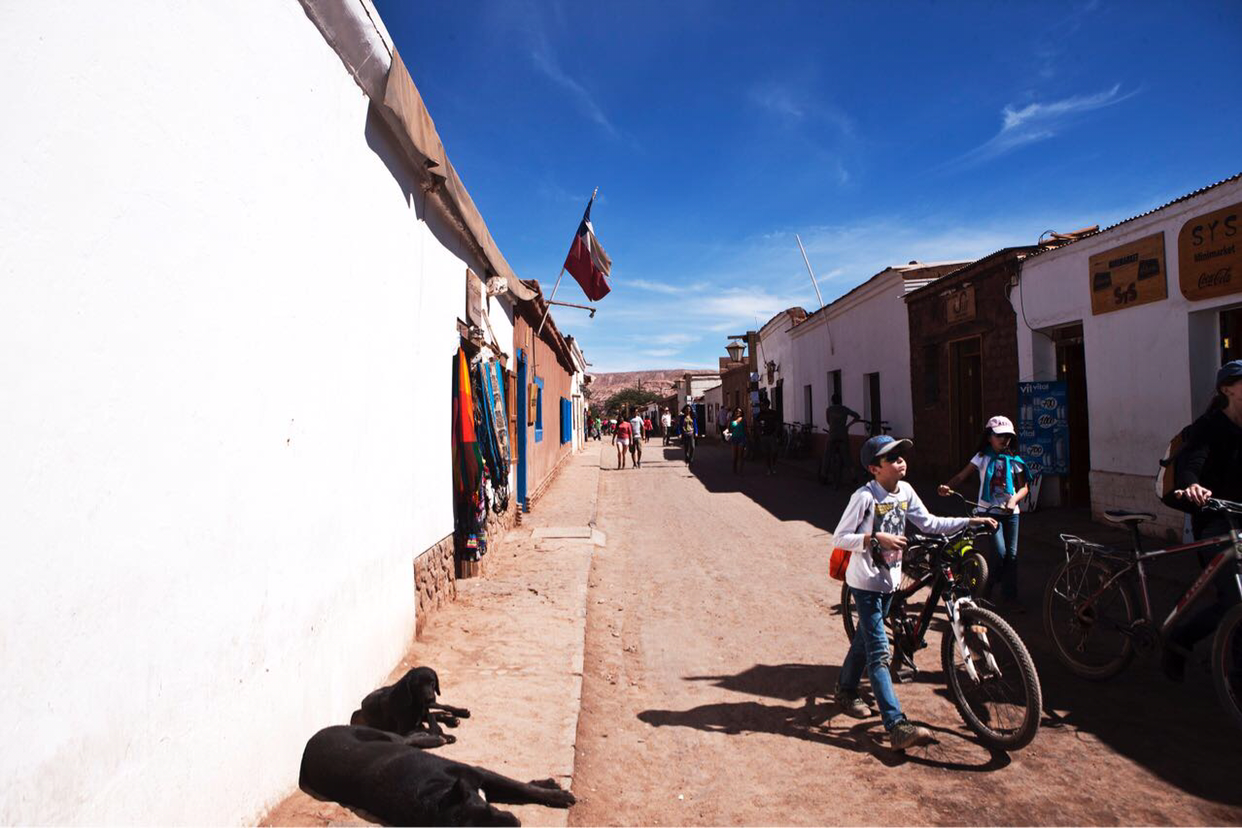 볼리비아 국경 검문소에서 버스를 타면 국경을 통과하여 San Pedro at Atacama 라는 마을에서 입국 수속을 한다. 칠레는 미국과 비자 면제협정국가라 비자없이도 입국가능하다. 국경마을이지만 꽤 붐비는 마을이다. 볼리비아에서 칠레로 넘어오는 배낭여행객이 반드시 들러야 하는 곳이고 반대로 칠레에서 볼리비아 소금사막으로 가기 위해서는 반드시 산페드로를 거쳐야 하기 때문이다. 그리고 산페드로에는 아타까마(Atacama) 사막지대가 있는데 바위 표면이 장구한 세월의 풍화침식작용으로 아주 특이한 형태를 연출해서 마치 달표면과 비슷하다해서 달의 계곡(Valle de La Nuna) 이란 곳이 있어 한번씩 보고가는 관광지이다. 우리 일행 4명은 점심을 먹기 전에 투어를 신청해 놓고 근처 식당에서 점심을 해결하고 오후 3시에 출발하는 투어를 기다렸다.