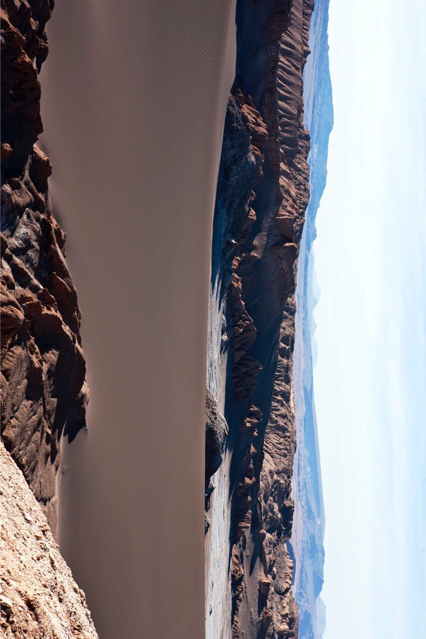 칠레쪽에서 바라본 우리가 넘어 온 볼리비아쪽 산세들. 사방 주위로 저런 멋진 산들이 즐비하다. 그냥 보고만 있을 수 없어서 세로쪼개기 찍기를 시도해본다. 볼리비아의 산들이 우뚝 솟아있어 떠나는 우리들을 배웅해주는 것 같다.