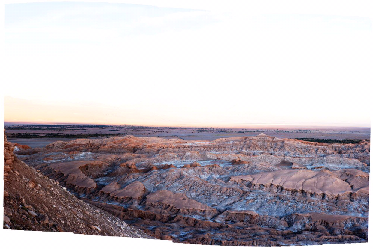 두 장을 연결하여 파노라마 사진으로 만들어 보았지만 일몰에 길어지는 거친 그림자에 콘트라스트가 너무 강하다.
