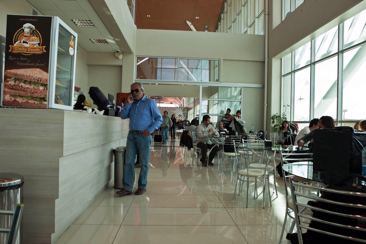 칠레 칼라마 공항. 증축공사중에 있어 보행자들이 차도로 돌아가게 되어있어 불편하였다. 아주 작은 시골 공항이다. 물어보니 공항에서는 표를 팔지 않는단다. 칼라마 시내에 있는 여행사에서 표를 사야하는데 오늘이 일요일이라 전부 다 휴업해서 표를 살 수 없었다. 내일이면 월요일이라 살 수 있을텐데 그려면 칼라마에서 하루 더 자야하는데 그럴바에야 어제 저녁 버스시간 알아보고 24시간 걸리더라도 버스로 산티아고 가는게 나을뻔했었다. 이제와서 그렇게 할 수도 없고……막막했다………