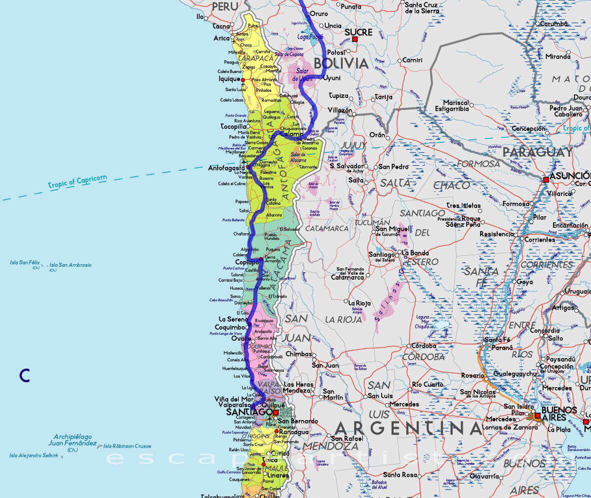 다시한번 여정을 보여주면 칠레 calama에서 뱅기로 santiago로 이동해서 푼타아레나스까지 뱅기로 가서 다시 버스로 이동해야한다.