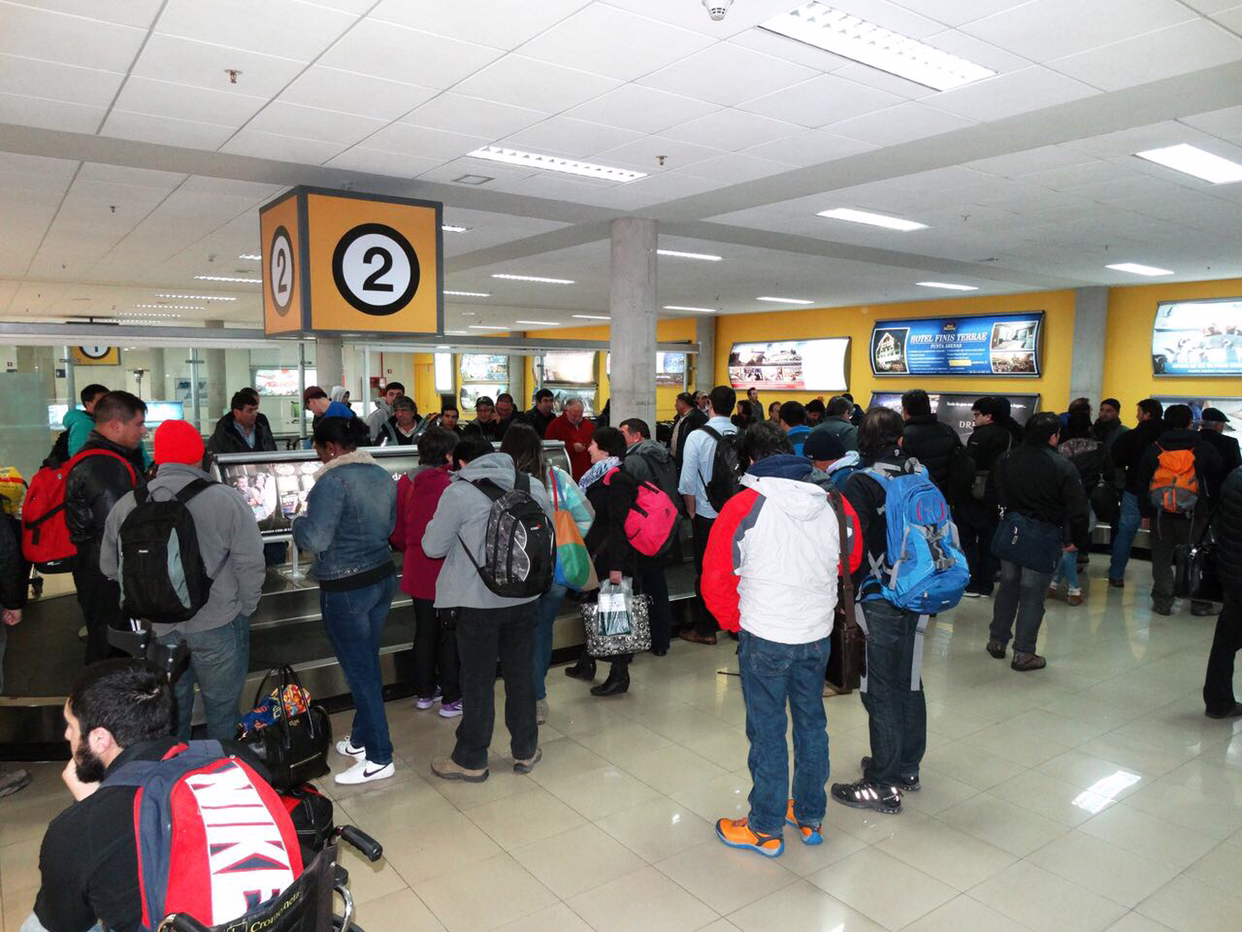공항 baggage claim에서 짐을 기다리는 승객들. 대부분의 승객들이 파타고니아 여행객들이다. 그나마 지금은 비수기라 그리 붐비지는 않는다고 한다.