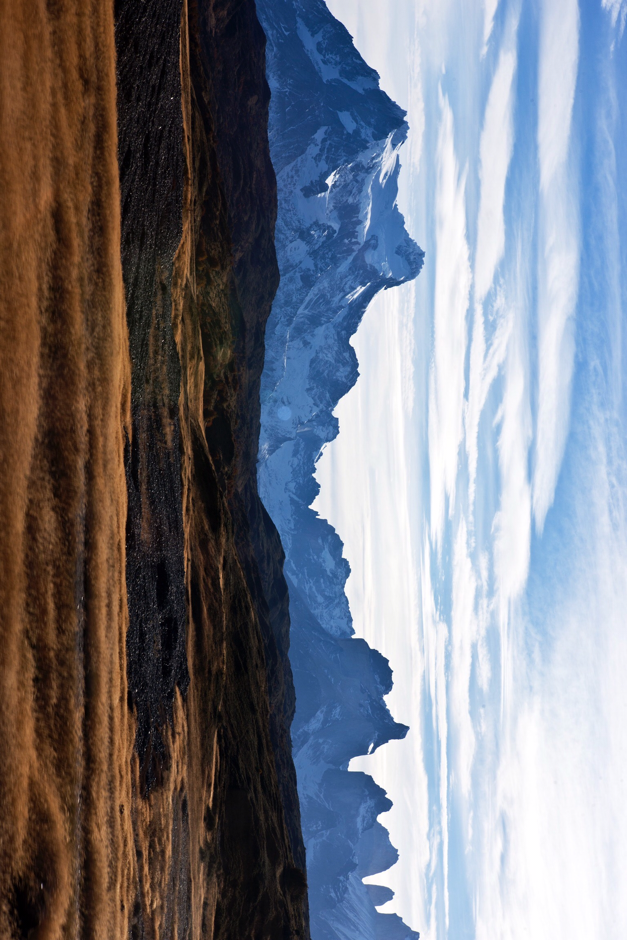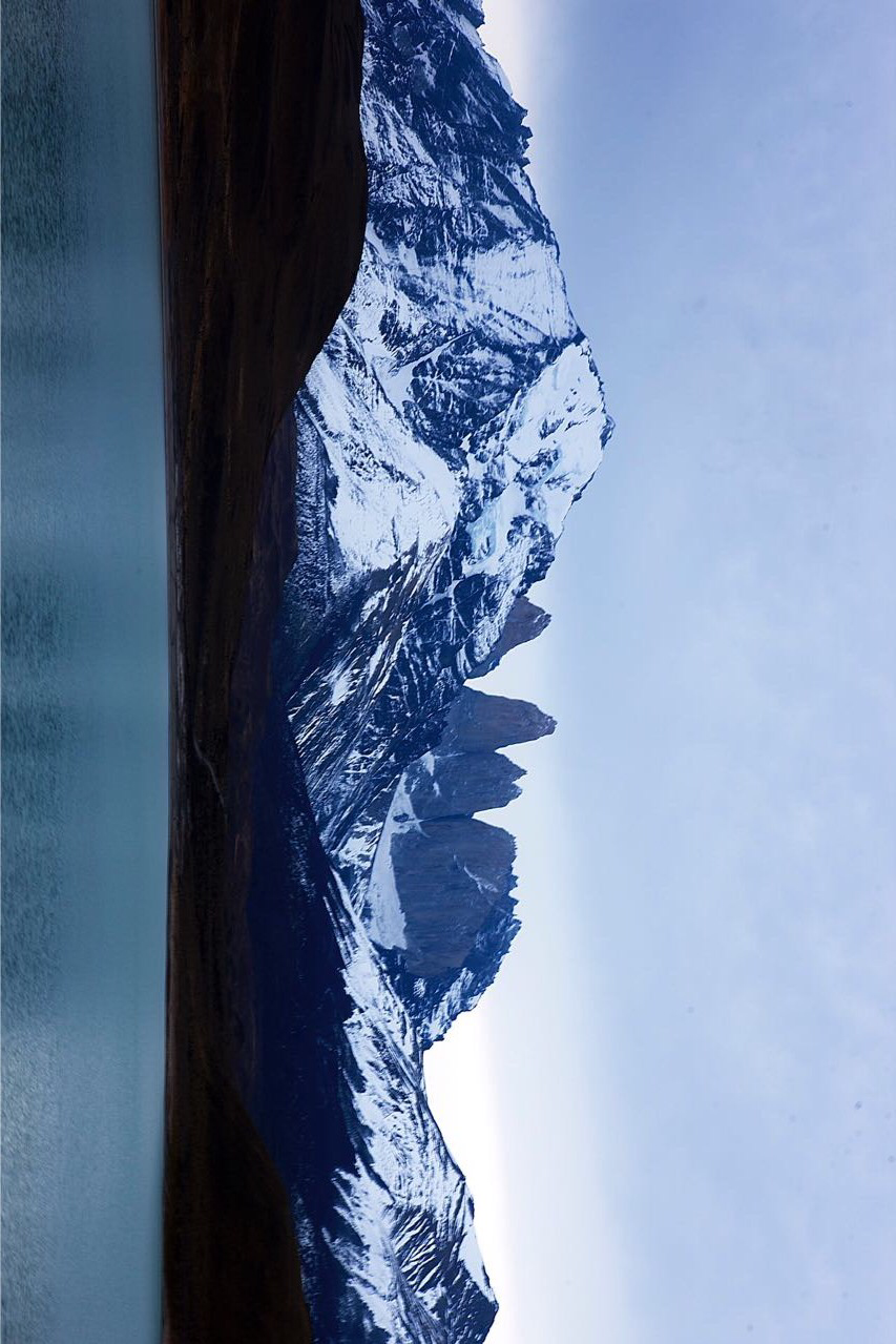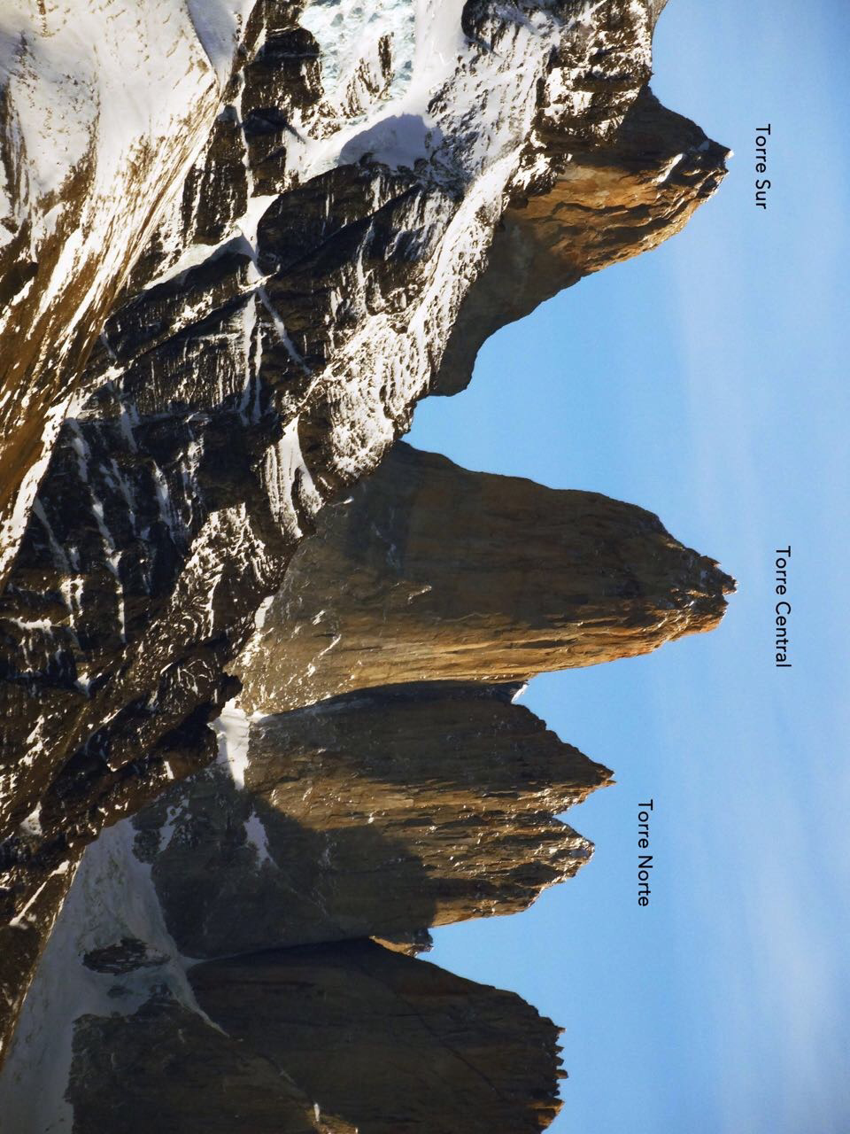 제일 가깝게 잡은 사진이지만 떨려서 촛점이 맞지 않게 되었다. 구릉 사이로 빼꼼하게 얼굴을 보이는 파이네의 뿔들로 V자 계곡에는 하얀 빙하가 선명하다. 기록을 찾아보니 첫 등정은 1957년 이탈리아 원정대가 성공했다고 한다. 제일 높은 주봉의 높이는 3,050m라 하니 백두산보다 약 300m 높은 셈이다.