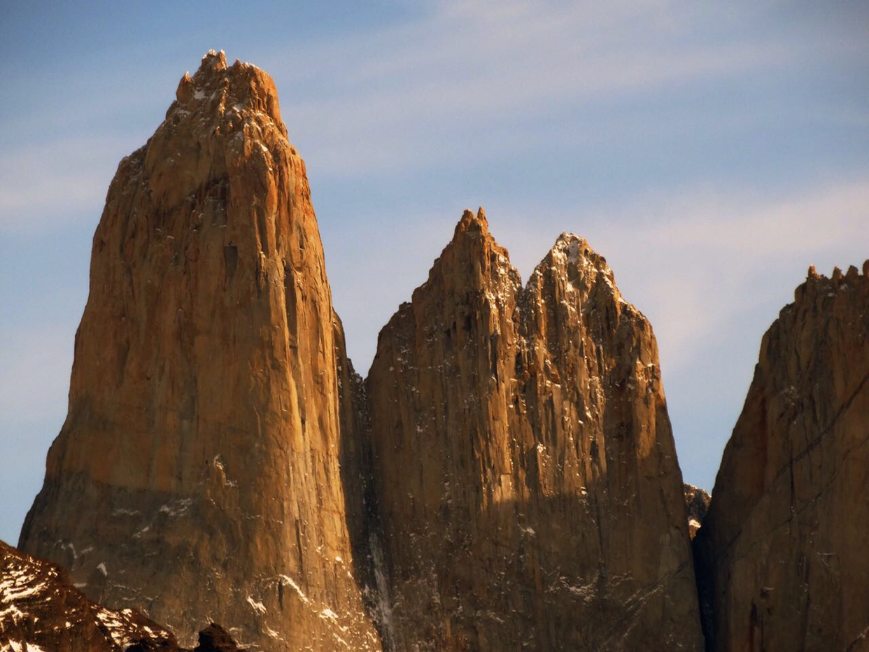 바위 모양이 뿔같이 생겼다하여 파이네의 뿔(CUERNOS)이라고도 불린다. 공원 들어오는 입구에서 보았던 세개의 Torres(towers) 보다 훨씬 뒷 쪽에는 세 개의 뿔(Cuerno)이 하늘을 찌르고 있다. 저런 형상이 자리잡기까지 약 1억2천만년의 시간이 걸렸다고 하니 머리속으로 상상이나 할 수 있는 시간의 개념일까? 그 장구한 세월동안 빙하와 비바람에 의하여 깎이고 다듬어져 현재의 모습으로 태어난 것이다.