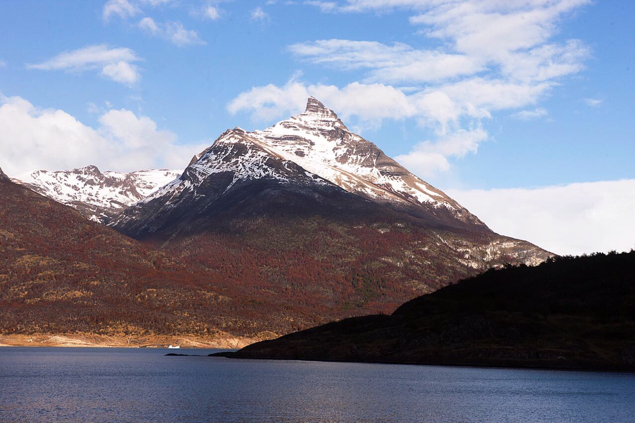 배를 타고 빙하 가까이로 가고 있다. 우리가 지금 가고 있는 빙하가 페리토 모레노빙하로 저 설산의 오른쪽 아래에 숨어있다. 곧 그 모습을 보여줄 것이다.