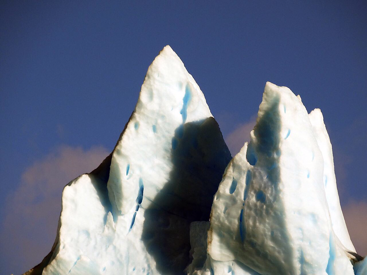 7번째 사진으로 배에서 바라볼 때 오른쪽 끝 모습이다. 일부는 무너져 내리고 있는 것 같다. 빙하 속에서 은은하게 비쳐지는 푸른색이 마치 빙하 속에다 푸른 전등을 켜 놓은 것 같다.