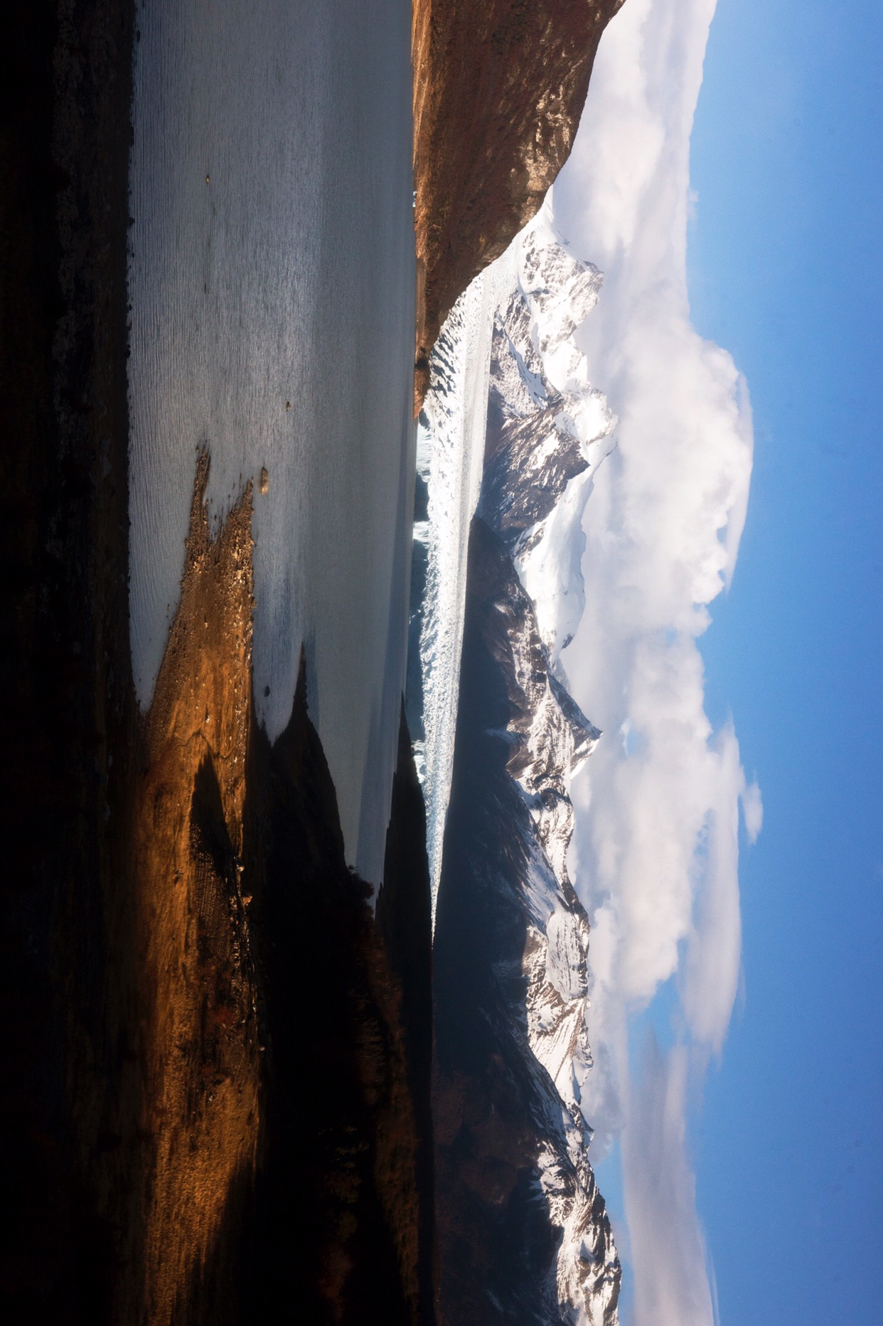투어버스를 타고 빙하국립공원으로 가까이 가면 설산과 시퍼런 호수를 만난다. 먼산들은 벌써 서릿발로 허연 머리를 하고 강인지 호수인지 푸른 빙하수로 가득찬 호수를 내려다 보고 있다.