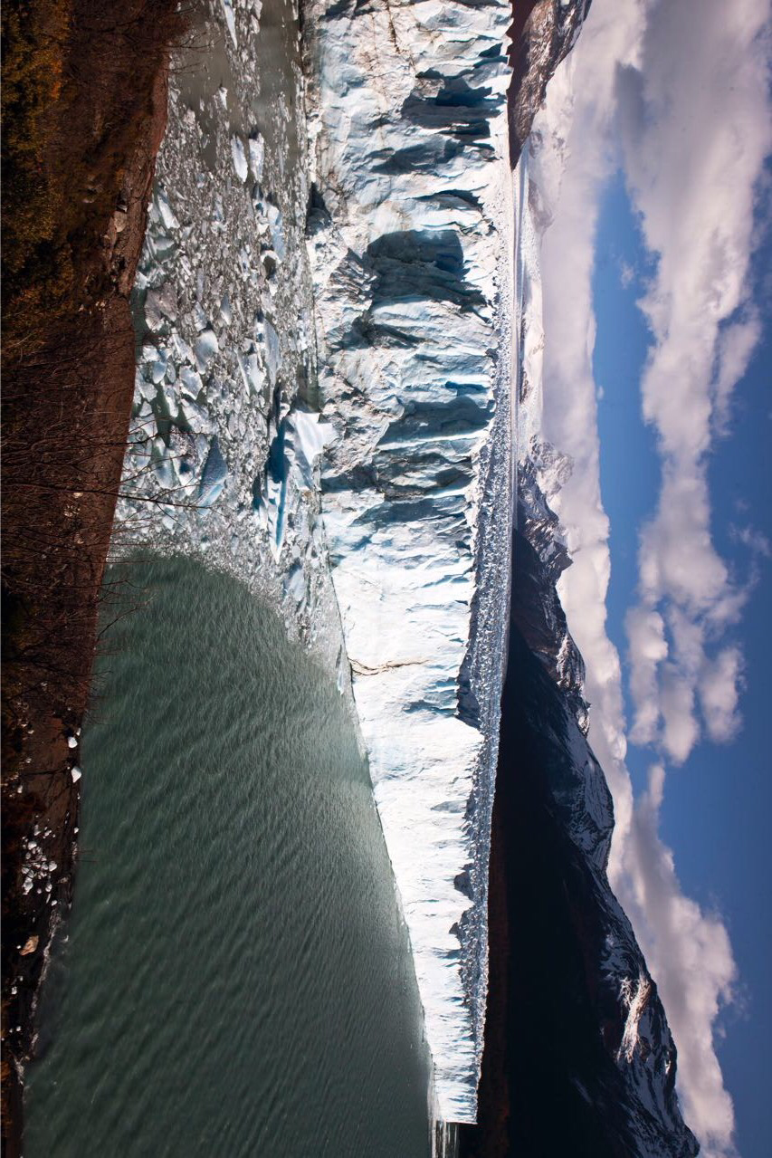 호수로 떨어지는 빙하의 우측부분이 이런 모습이다. 그러니까 떡판같이 거대한 빙하가 계곡사이로 흘러 내려와 크게보면 좌측, 중앙, 우측으로 각각 호수로 떨어진다는 이야기다.