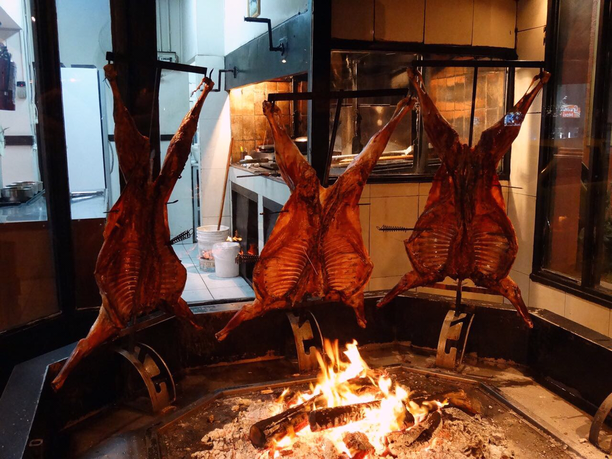 내일은 뱅기로 세계의 땅끝이라고 하는 우수아이아로 이동한다. 오늘이 칼라파테에서의 마지막 밤이라 그동안 학수고대했던 아사도를 찾아 나섰다. 어느 식당 앞에 그럴듯하게 고기를 굽고있다. 자세히 보니 장작불은 진짜인데 통갈비를 반으로 제낀 고기는 모형이다. 과시용으로 손님을 끌기 위해 고기모형을 전시한 것이다.