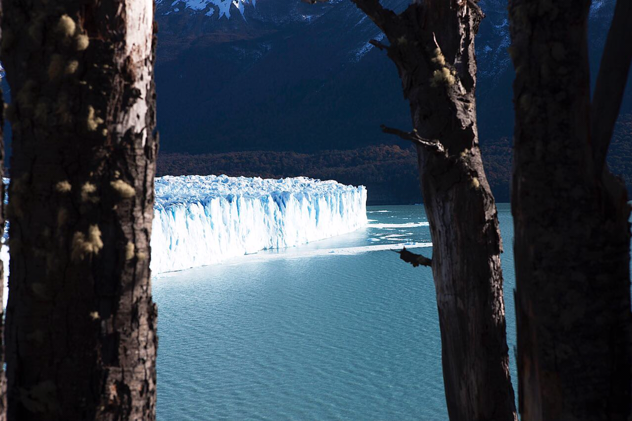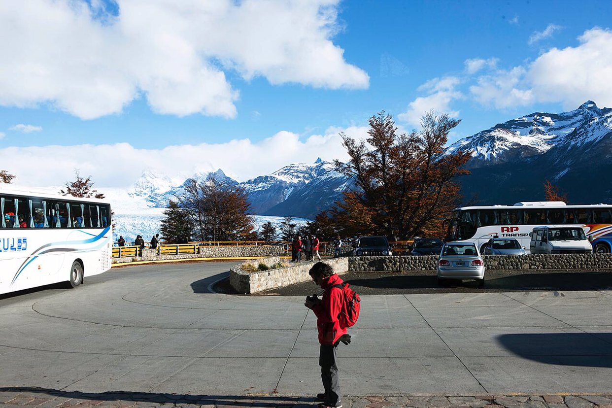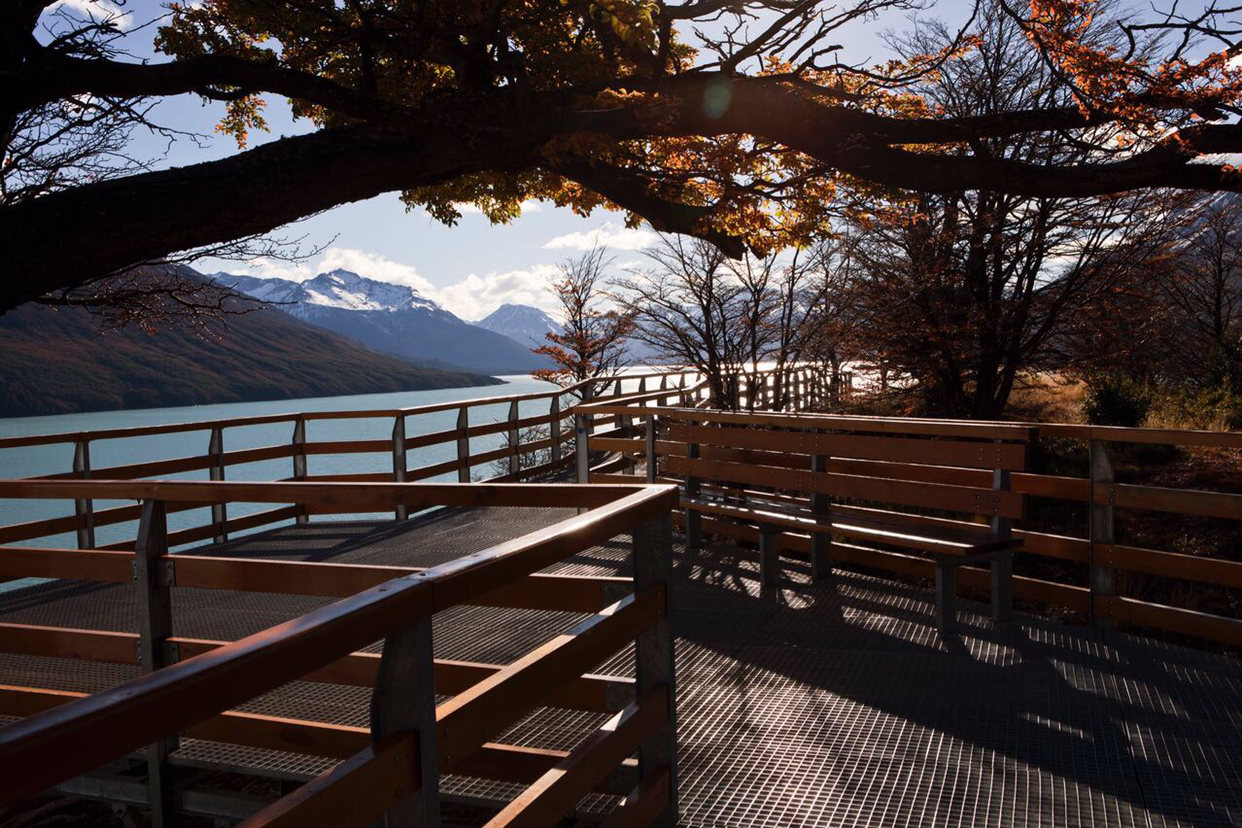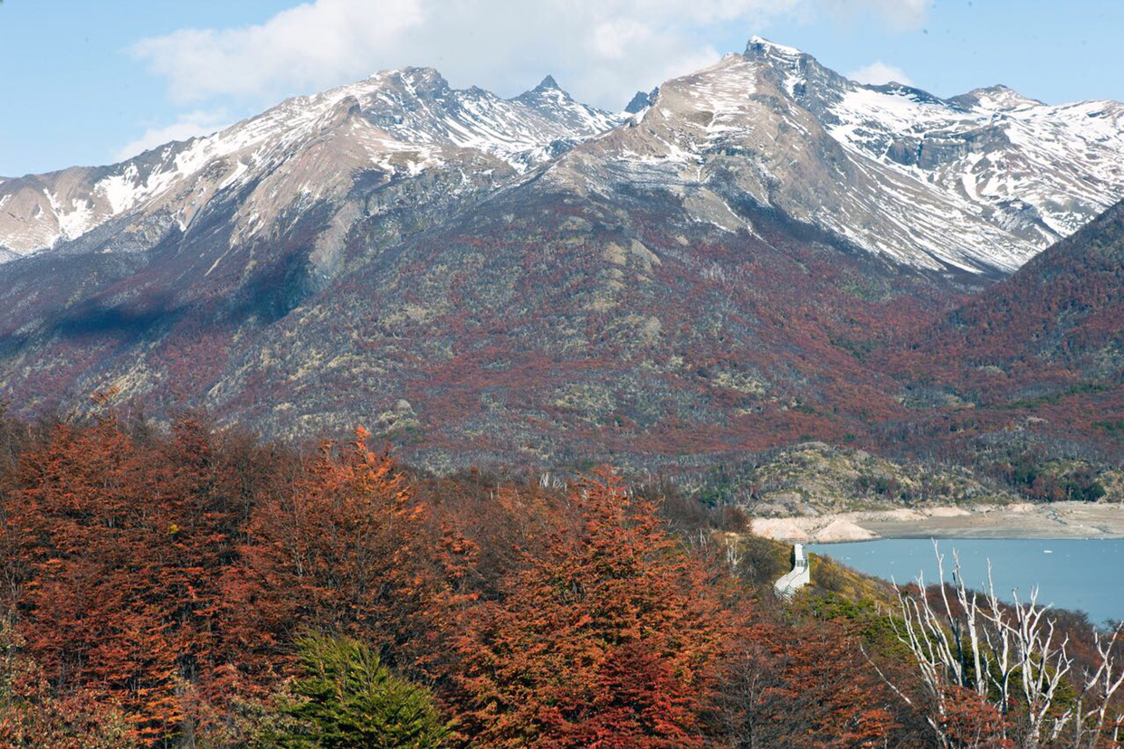 빙하 주위의 산에는 단풍이 한창이다. 남반구 4월은 북반구 10월 가을 날씨와 비슷하다.