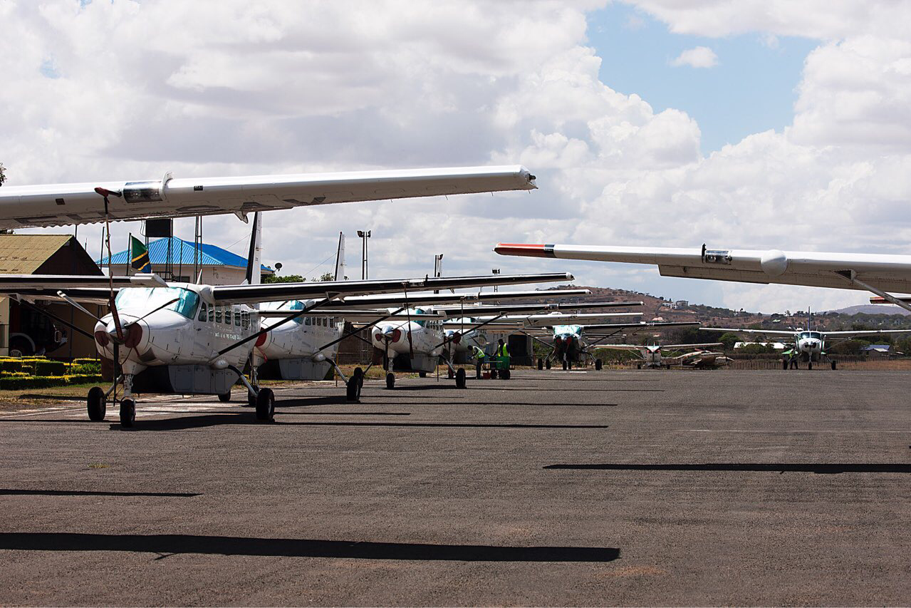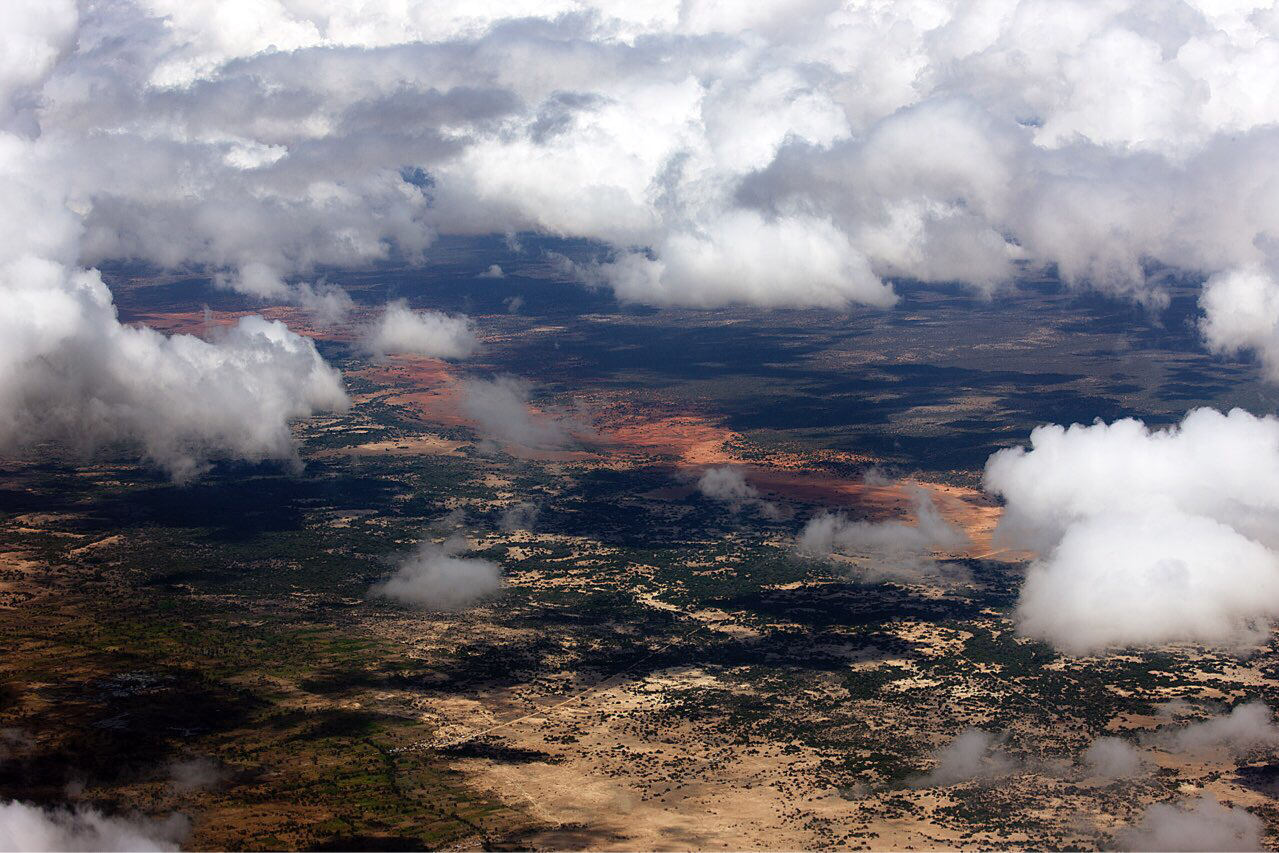 처음에는 바로 Arusa로 간다 해놓고 Arusa 가는 손님이 별로 없으니 기장과 부기장빼고 10명 좌석중 7 명의 잔지바르가는 손님을 태워 잔지바르에 들렀다가 7명을 잔지바르섬에 내려주고 Arusa 가는 승객 1명을 태워 결국 4명만 싣고 Arusa로 향했다. 덕분에 뱅기 안에 좌석이 남아 돌아 잔지바르 주변 항공사진도 새로 한번 더 찍었고 Arusa 갈 때 까지 텅텅 빈 좌석에서 100 - 400mm 렌즈로 광활한 탄자니아 평원을 경비행기에서 실컨 보고 원없이 항공사진도 많이 찍었다. 하늘에서 내려다 본 탄자니아 평원은 말그대로 황량함 그것이었다. 큰 산도 없었고 울창한 밀림지대도 없이 키작은 관목만이 듬성듬성하게 붉은 황토위에 점점이 박혀 있었다. 그런 황량함때문인지 몇판 찍은 항공사진에서 색다른 이미지를 몇 점 얻을 수 있었다. 그런 신선 놀음에 한 시간이 금방 지나 오후 1시 33분에 Arusa 공항에 도착하였다. 정말로 조그마한 공항이었다.