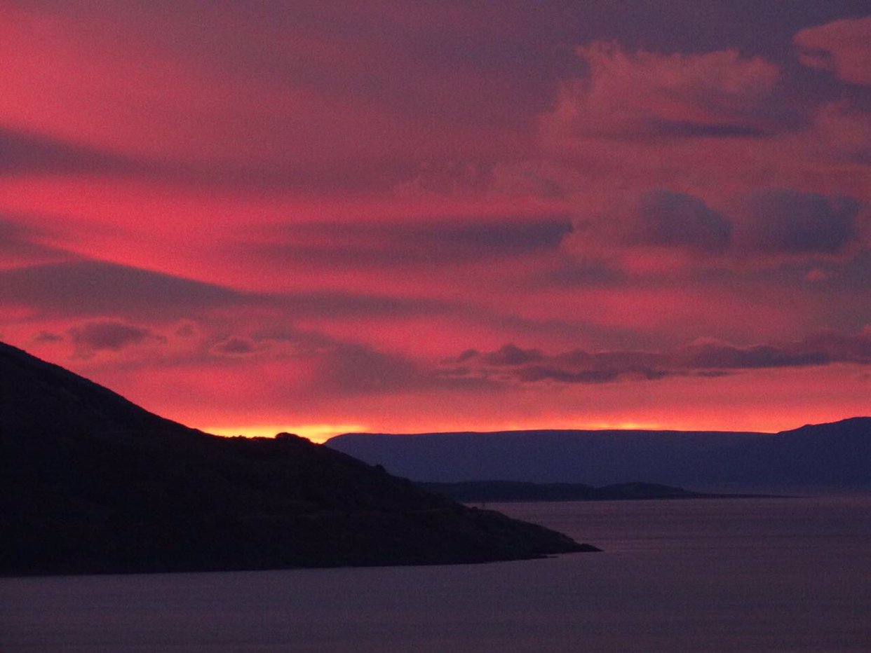 오늘은 두탕을 소화하기에 새벽부터 서두른다. 8시에 투어버스를 타고 온 동네를 돌아 다니면서 예약된 손님을 픽압해서 티에라델푸에고 국립공원으로 향하였다. 새벽에 나서니 동녁 하늘에는 불이 붙고 있었다. 버스창가에 비친 아침불은 계속 불타고 있었다.