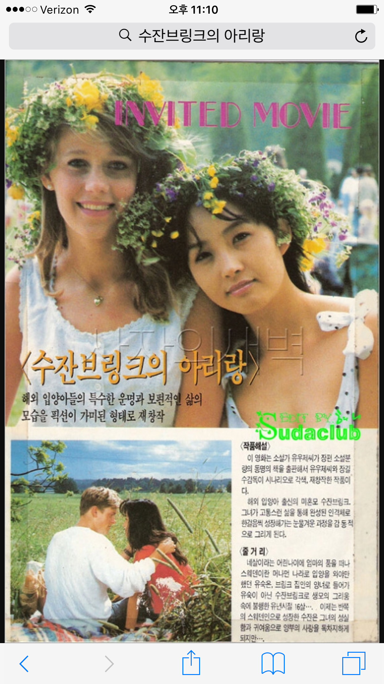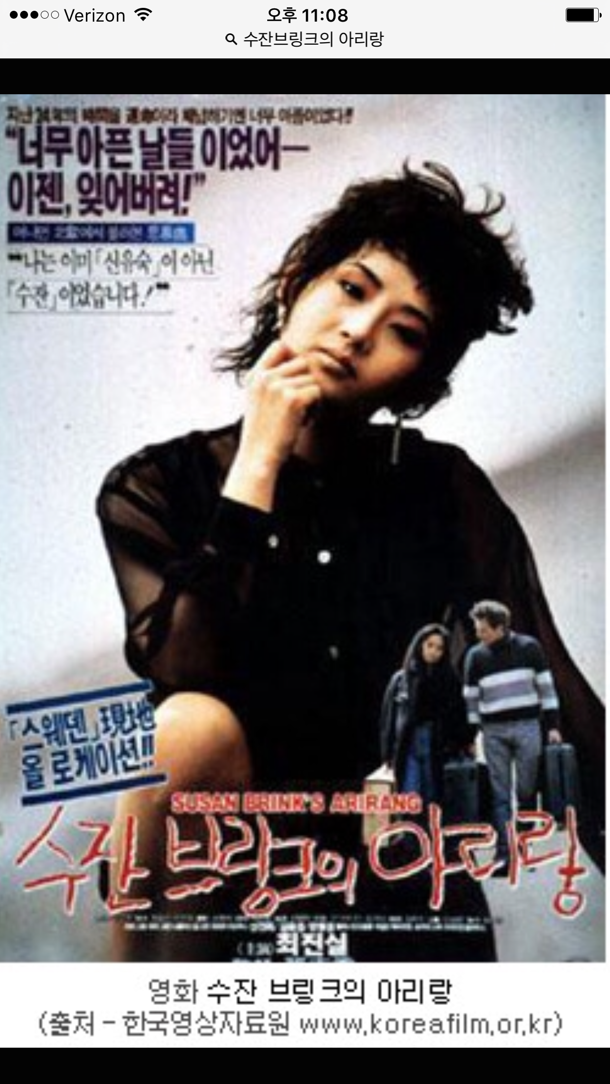 수잔 브링크는 스웨덴 이름이고 한국 본명은 신윤숙인데 63년생으로 아버지가 돌아가신 후 가정형편이 어려워 4살 때 스웨덴으로 입양되었다. 입양된 새 가정에서 새엄마의 확대로 여러번 자살을 시도하기도 하였다. 그 후 대학에서 만난 남자와 동거하여 애를 낳았지만 남자는 책임감도 없이 떠나버려 혼자 애를 키우며 미혼모로 지내다가 입양아를 찾는 방송국의 프로그램 도움으로 한국에서 친모를 만났고 그 후 외국 입양반대 운동가로서 활동하다가 2009년 초에 암으로 안타깝게 세상을 떠났다. 이런 실화를 바탕으로 장길수 감독이 1991년 메가폰을 들어 만든 영화가 '수잔 브링커의 아리랑'이란 영화로 당시 잘나가던 최진실이 수잔역을 열연했었다. 그런데 희안하게도 수잔이 암으로 죽기 3개월 전에 최진실이 가정문제로 자살로 생을 마감하였는데 둘의 죽음이 어쩌면 타고난 인연으로 그렇게 이어지지 않았을까하는 생각이 들기도 한다.