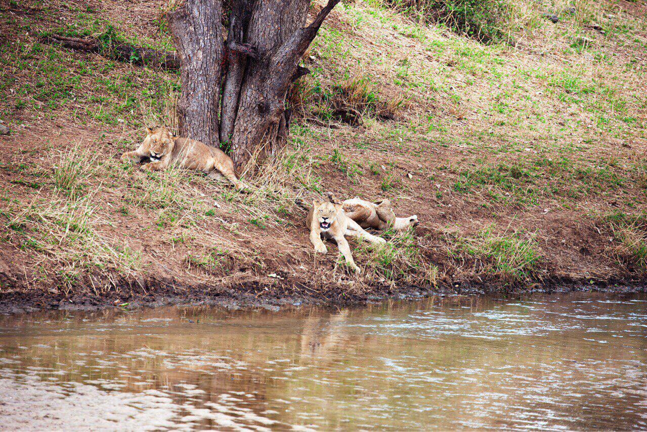 Game Drive란 말그대로 사냥감찾아 차를 몰고 나간다는 것으로 야생동물을 찾아 가야한다. 지금은 건기라 더 그런 것 같은데 처음에는 눈을 씻고 보아도 개미새끼하나 보이지 않았다. 사파리 규칙이 운전수가 동물찾아 다니는데 도로를 벗어나면 안되고 차를 정지해도 밖으로 내려서도 안된다. 그러다보니 동물을 찾더라도 그 놈들이 도로 가까운 곳으로 나오지 않으면 멀리서 잡아야 하는데 카메라로 그렇게 찍어봤자 별 볼일 없다. 아래 사진이 그런건데 사자무리를 보아도 근접할 수 있는 도로가 없기 때문에 사자들이 차쪽으로 가까이 오지 않은 이상 실감나게 잡을 수 있는 방법이 없다. 내가 400mm 망원렌즈로 찍어도 사진에 보이는 사자 크기가 콩알만한데 똑딱이나 일반렌즈로 찍은 사진에는 사자 크기가 콩알보다 더 작게 나올 것이다.