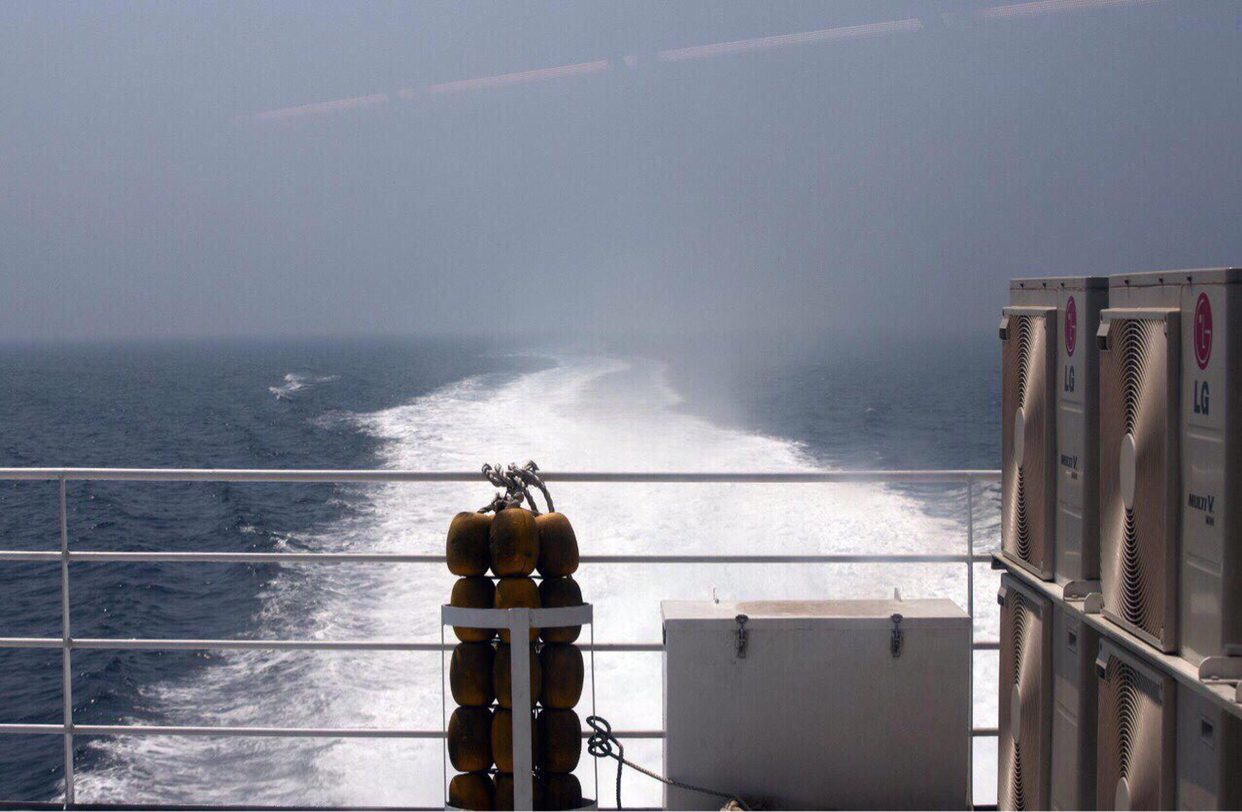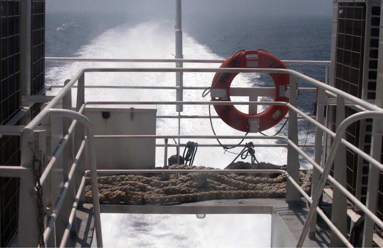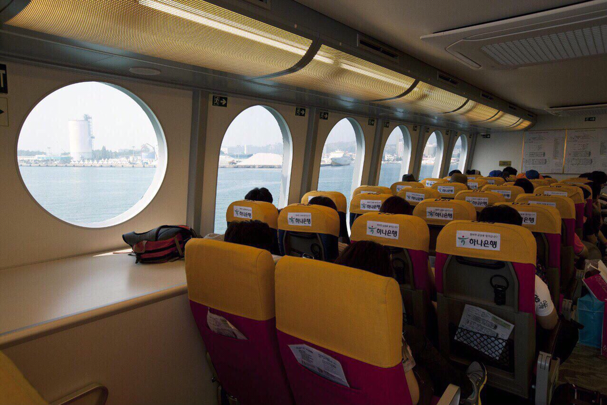 배에서 3시간 보내는게 예사 힘든게 아니다. 멀미는 고사하고 이 배는 38노트 쾌속으로 달리기 때문에 갑판으로 나갈 수가 없어서 꼼짝없이 배 안에서 죽쳐야 한다. 배가 쾌속으로 달리면 양쪽 난간에서 물보라가 튀어 올라 오기 때문에 갑판으로 나갈 수가 없다. 큰 대형 화면의 티비가 중앙에 있어 오락 프로그램을 틀어 주는데 심심하기는 마찬가지다. 그냥 심드렁하게 한번씩 배 안을 이리저리 오갈 뿐이다.