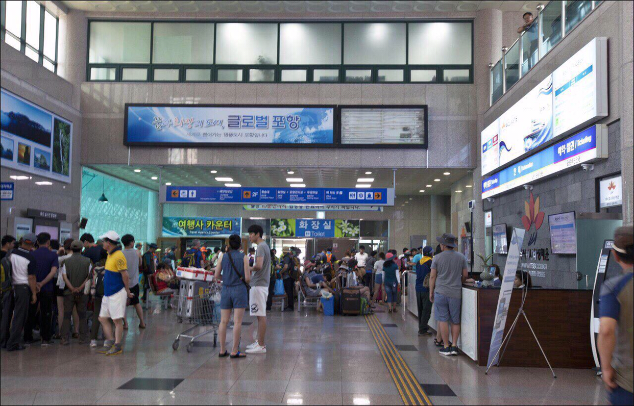 포항 죽도시장에서 1/2일을 보내고 다음 날 아침 드뎌 울릉도행 배에 오른다. 아침 10시 50분에 출발하는 태성해운 선사를 이용하기로 하였다. 어제 오후에는 썰렁하던 대합실이 오늘 아침에는 시끌법쩍하다. 모두들 등산복이나 나들이 차림으로 잘 차려입고 배타기를 기다리고 있다. 두 선사의 운임이 다르다.
