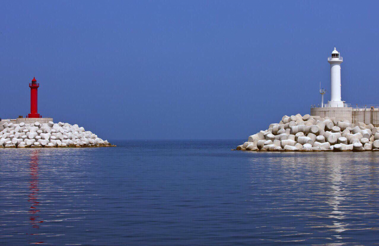 가끔씩 조불다가 일어나서 책을 보다가 배 안을 한번씩 둘러보거나 하면서 그렇게 3시간동안 철부지 꼬마같이 이리저리 용을 틀고 나서야 울릉도 저동에 닿을 수 있었다. 저동항 입구 양쪽으로 이뿌게 세워 놓은 하양, 빨강 두 등대가 8월 여름 한낮에 내리쬐는 뜨거운 태양아래 아까 내가 배 안에서 그랬듯이 꾸벅꾸벅 조불고 있었다.
