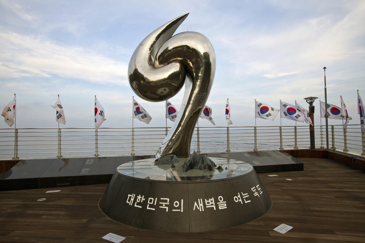 출발점 전망대에 세워진 조형물로 독도 모형을 세워놓고 "대한민국의 새벽을 여는 독도"라고 새겨 놓았다.