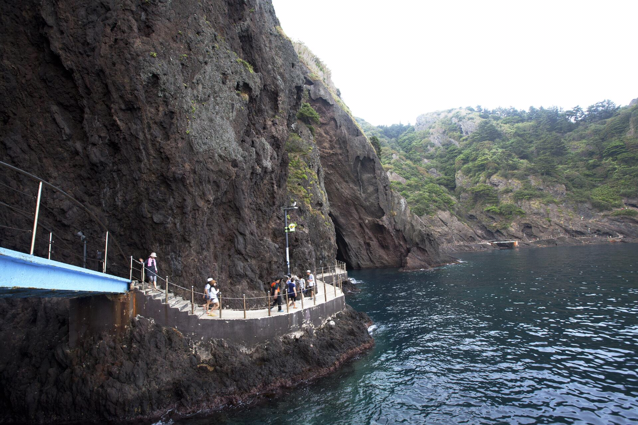 해안가를 따라 쭉 이어진 산책로를 보여주는 사진으로 독도 케이블카 전망대에 올라 내려다 보고 찍은 것이다. 해안가를 빙빙 돌아가는 산책길이 한 눈에 보여진다.