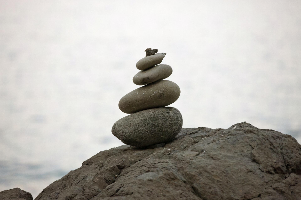 해안 산책로 끝에 누군가가 이쁘게 쌓아올린 돌탑.