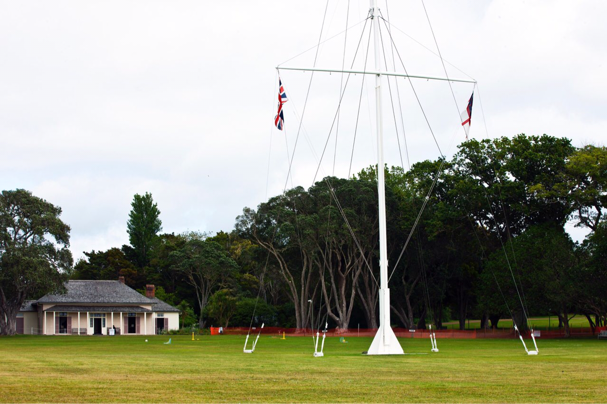 GROUNDS에서 말하는 그라운드가 훤히 보이는 바닷가에 놓여있다. 사진 왼편에 보이는 저 사택이 당시 조약식을 주도한 영국인 수장 JAMES BUSBY이 거주하였던 곳이다. 조약은 그의 집 앞에 대형 천막을 치고 그 안에서 서명이 이루어졌다. 천막이 있었던 곳에 지금은 기념폴대를 세워 놓았다. JAMES는 1833년부터 THE BRITISH RESIDENT(외국주재 사무관)로 지명되어 당시 뉴질랜드에 거주하던 영국인들의 수장으로 공적인 권력을 가지고 이민사회를 이끌어 나갔다. -JH-
