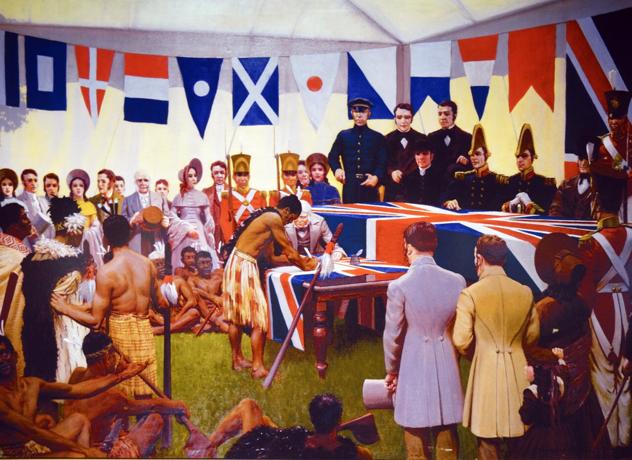 기념관 내부를 관람하다 우연히 발견한 재미있는 그림이다. 조약 사인식을 화가가 그린 그림인데 일장기가 눈에 쏙 들어온다. 당시 일본과 영국이 상호 동맹의 밀월 관계가 있어 이 조약식에 참석한 것 같기도하다. 계약 당사자인 영국 관리 앞에서 조약에 한 명씩 서명하는 부족장의 심정이 어떠했을까? 조약내용을 보면 분명 동등한 관계는 아니고 갑과 을의 종속 계약인 것 같이 보이는데 선진 문명을 앞세운 영국의 무력 앞에 굴복할 수 밖에 없었던 원주민의 처지가 안타까울 뿐이다.