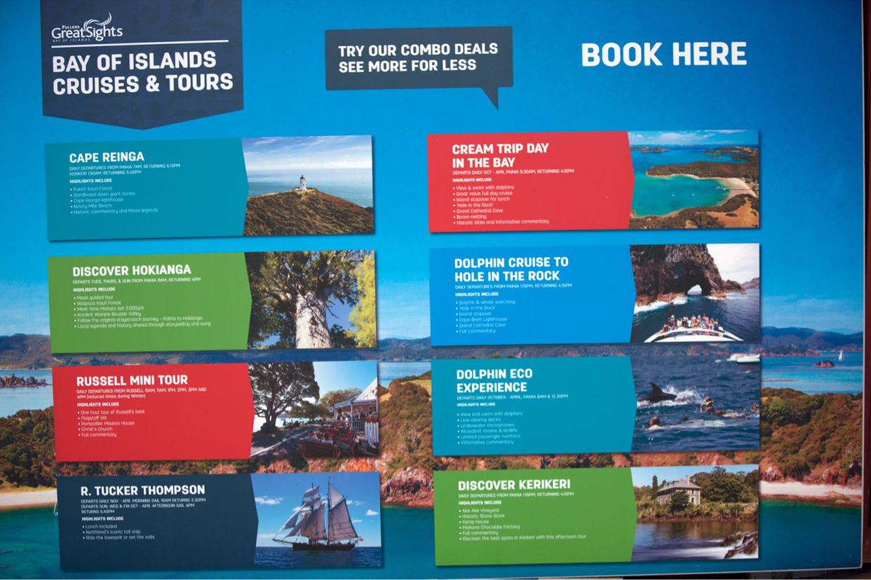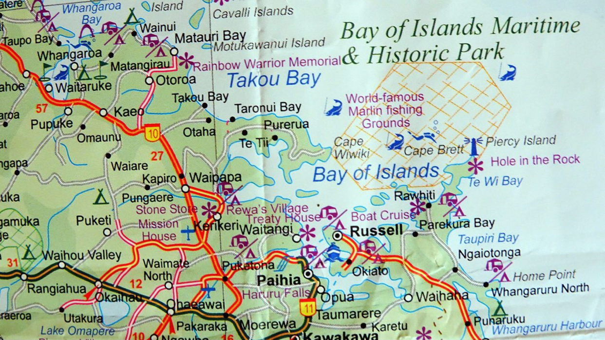 지도를 펼쳐보면 BAY OF ISLANDS가 천연적으로 좋은 내항이라는 것을 알게된다. 들어오는 입구는 약간 좁은데 일단 내만으로 들어오면 파도가 없는 넓은 내항이 있기 때문이다. 게다가 높고 낮은 해안선을 따라 가슴을 탁 트이게 하는 경치가 펼쳐지기 때문에 와이탕기 역사 유적지와 더불어 이미 유명한 관광지가 되어 국내외 많은 관광객을 끌어 모으고 있다.