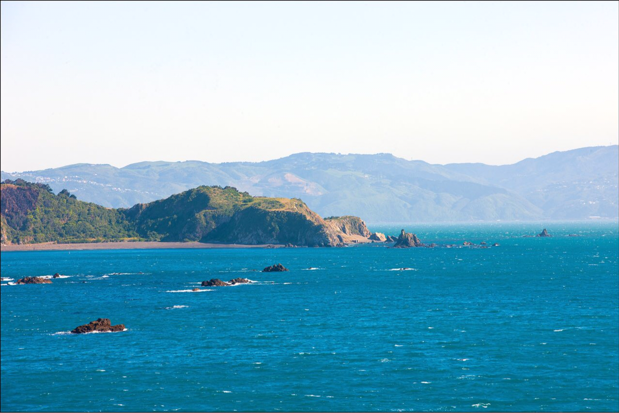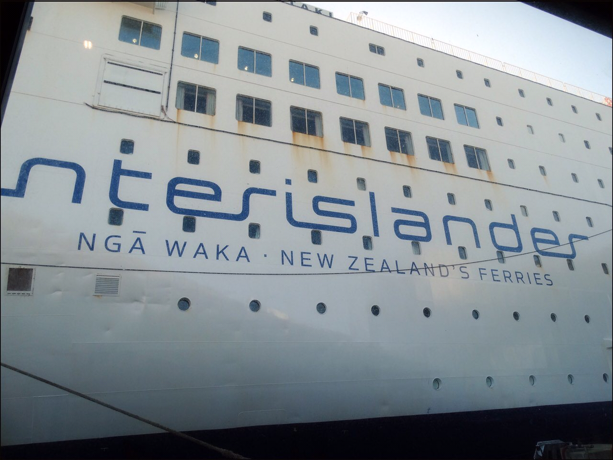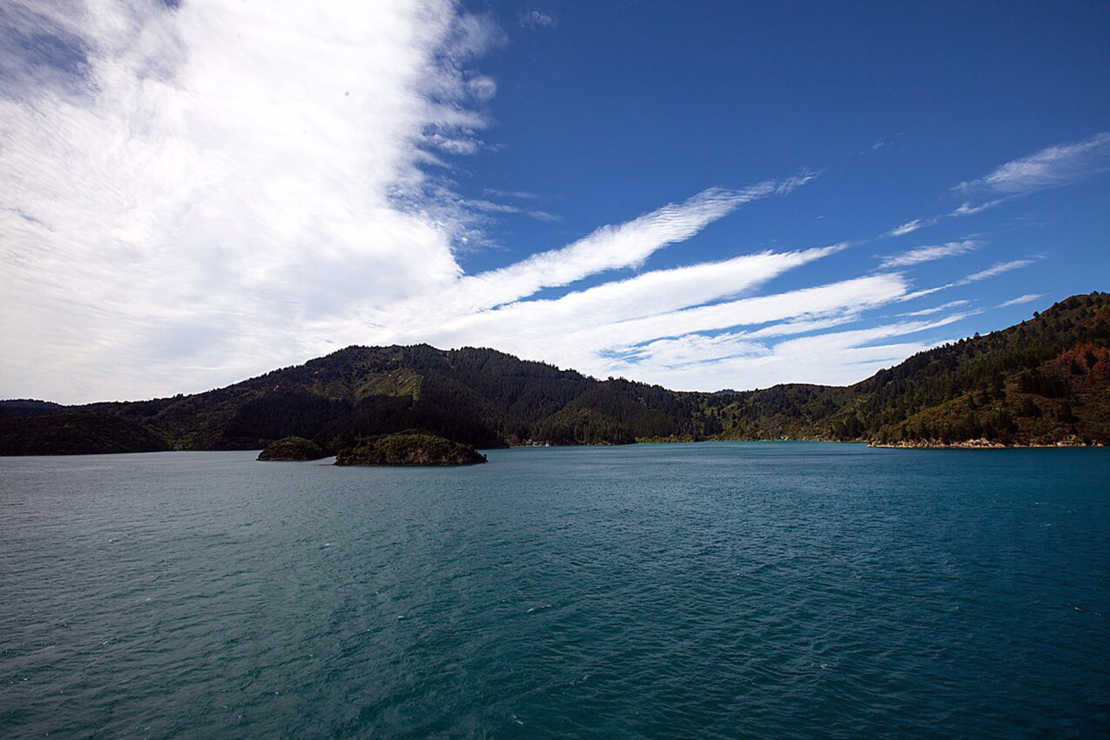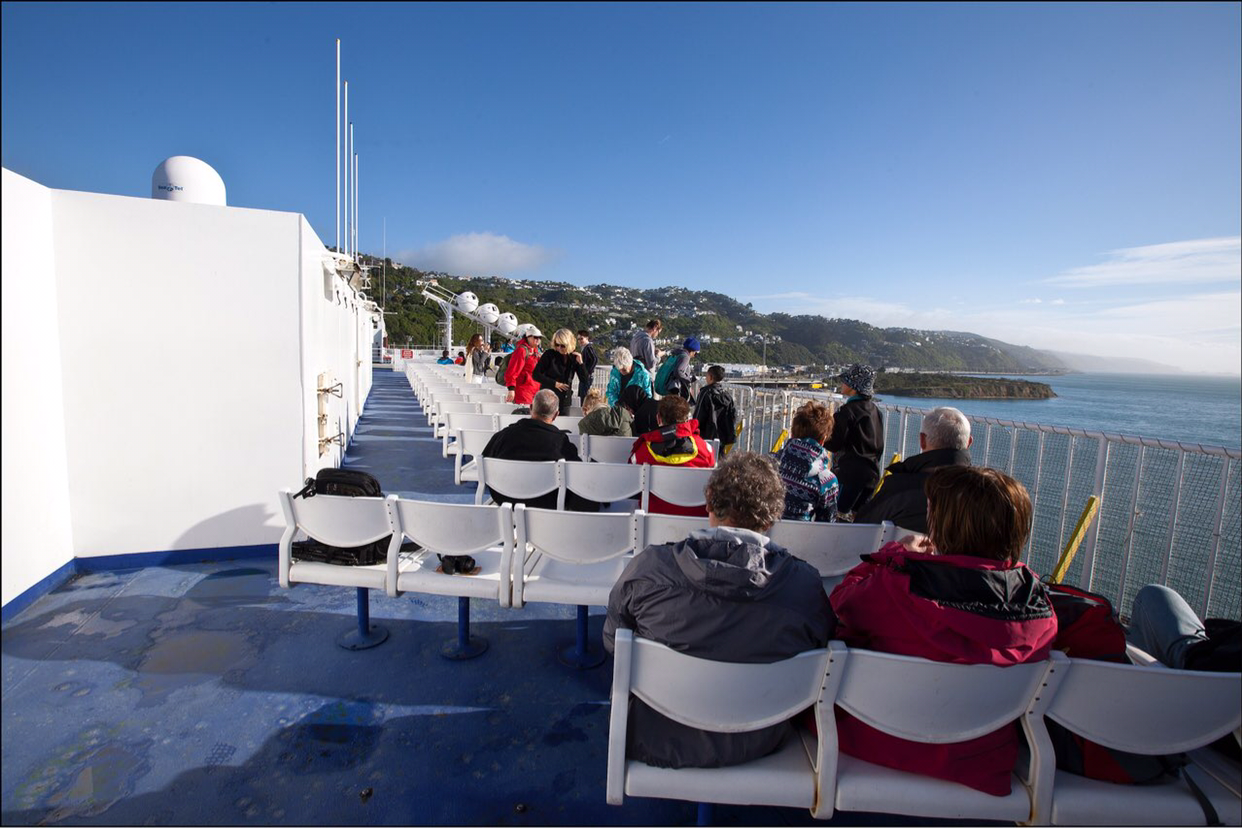 배가 어느정도 웰링톤에서 조금씩 멀어지자 웰링톤을 둘러싸고 있는 작은 산들의 윤곽선이 수묵화의 농담처럼 뚜렷한 선들이 점점 옅어져간다. 배가 남섬으로 진입하는 해로로 들어서자 멀리서 높은 산들이 병풍처럼 서 있는 광경이 눈에 들어온다. 남섬 캔터베리주 오른편 위쪽으로 위치한 만년설로 덮인 카이코우라 산맥이 멀리서 보이는데 그 산맥 아래쪽에 있는 카이코우라라는 마을은 고래 WATCHING으로 유명한 관광지라고 한다. 여름에도 눈을 머리에 이고 있는걸 보니까 만년설이 분명한데 산이 높은 모양이다.