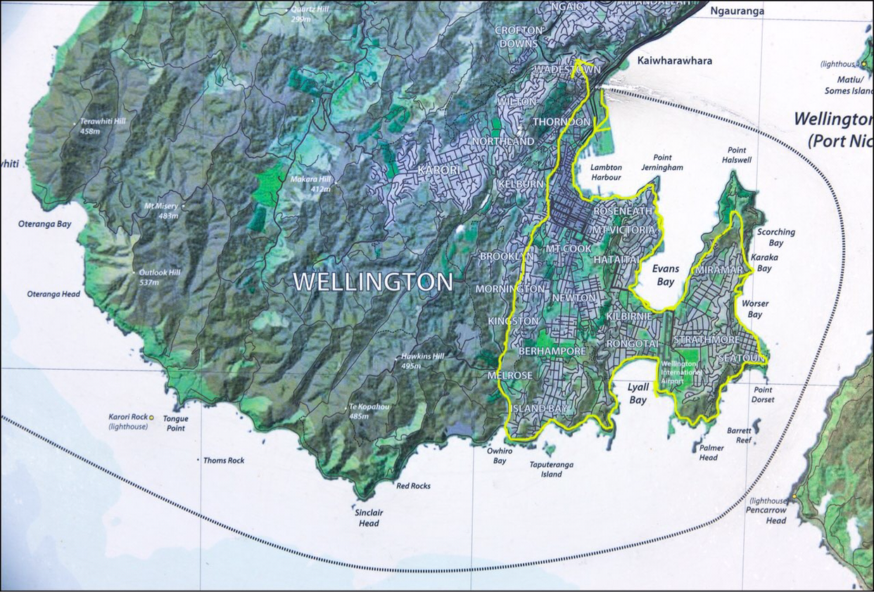 나는 시야가 확 트인 상층 갑판에 자리를 잡고….모델K는 아침에 너무 일찍 일어나서 잠이 부족한지 아래층 로비 의자에서 졸고 있다. 웰링톤의 해도를 보니까 어제 저녁에 돌아 본 MARINE DRIVE TOUR 길이 확연하게 보인다. 좀 더 세밀하게 보니까 우리가 돌아서 나간 OWHIRO BAY에서 더 안쪽으로 해안선을 따라 드라이브길이 나 있다. 혹시 담에 웰링톤을 둘러 볼 기회가 있는 사람은 탐험가처럼 해안선 도로를 한번 삥 돌아 보길 권한다.