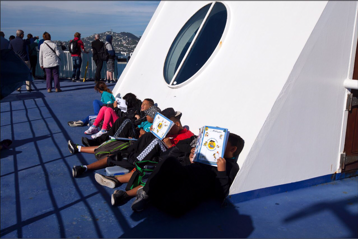 원주민 마오리족 학생(초등학교) 열댓명이 역시 원주민인 선생 두명 인솔하에 남섬으로 가고 있다. 수학여행인지 소풍인지 알 수는 없지만 책에서 보던 원주민 마오리족을 보는 것만해도 행운이다.원주민들은 대부분 관광지같은 곳에서 일하는 사람들이 많다. 특히 전통춤을 공연하는 곳에 가면 볼 수 있는데 그런 곳에 가지 않아서 볼 기회가 없었다. 원주민들은 따로 다른 곳에서 사는지 길거리를 다녀도 보기가 힘들다.