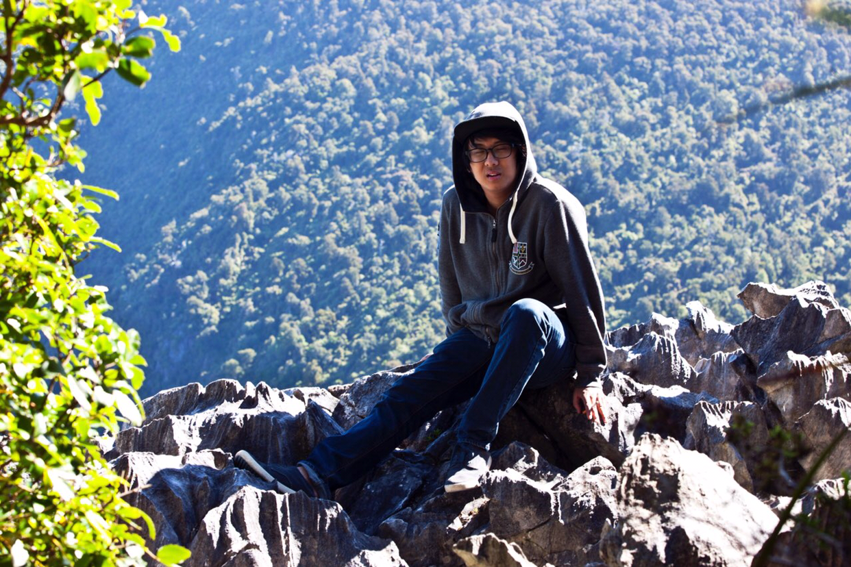사진으로 보아도 전망대가 매우 높은 곳에 위치하고 있음을 알 수 있다. 처음에는 아무도 없어 인증샷을 서로 찍었는데 나중에 다른 관람객이 와서 한 장 부탁했다. 전망대가 공중에 걸려있는 것 같아 난간에서 아래로 쳐다보니 오금이 저려온다. 영락없는 고소공포증(ACROPHOBIA) 환자같다. 그런 나에 비해 모델K는…….난간도 없는 절벽 끝에 앉아서 인증샷을 찍어 달란다. 전망대 옆으로 빠져 나가면 난간 없이 절벽 아래를 조망할 수 있는 조그만 공간이 있다. 그리로 비집고 들어가서 앉을 수 있는 담력은 어디서 오는 것일까? 공원 도처에 널려있는 화강암 바위 형태가 조금 독특하다. 상하 또는 좌우로 결이 있어 마치 징으로 쪼아 낸 것 같다.