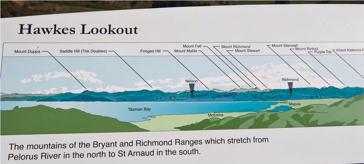 전망대는 공원으로 들어가는 CANAAN RD로 들어가기 전 바로 밑에 있다. 차를 파킹해놓고 약 10분간 걸어서 올라 가야 한다. 이 전망대에서 내려다 보면 저 멀리 우리가 아까 지나온 NELSON, RICHMOND 그리고 넬슨시 앞바다인 TASMAN 만이 시원하게 보인다. 건너편 산맥들이 PELORUS RIVER에서부터 뻗어나왔다고 하는데 PELORUS강은 홍합 양식의 본고장인 HAVELOC으로 흐르는 강이다.