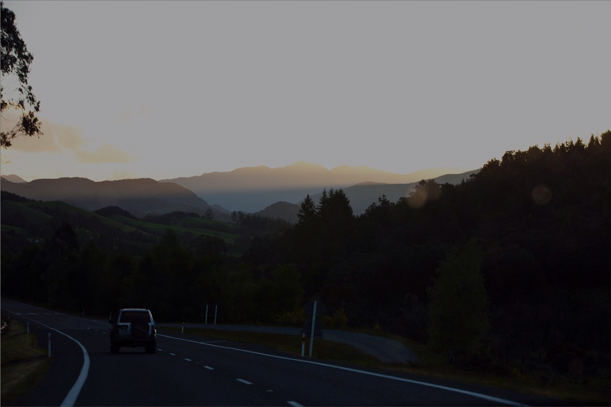 공원 파킹장에서 돌아 나와서 타고 올라왔던 60번 도로를 다시 타고 이제는 내려갔다. 올라 올 때와 마찬가지로 내려갈 때도 어지럽게 길이 빙글빙글 돈다. 뉴질랜드 도로 시스템이 대부분 일차선이다. 올라가는 단선 그리고 내려가는 단선이므로 따로 추월선이 없어 천천히 운전하면 어김없이 뒷꽁무니에 달라 붙는다. 그래서 중간 중간 추월선이 따로 마련되어 있어 추월하도록 되어있는데 때로는 시도 때도 없이 심지어 이런 산악 커브 길에서도 추월하기도 한다. 가파른 커브길에는 가드레일도 없어 차선을 이탈하면 그대로 낭떠러지로 굴러 떨어진다. 그런데도 운전은 빨리빨리 하면서 냅다 추월해 달린다.