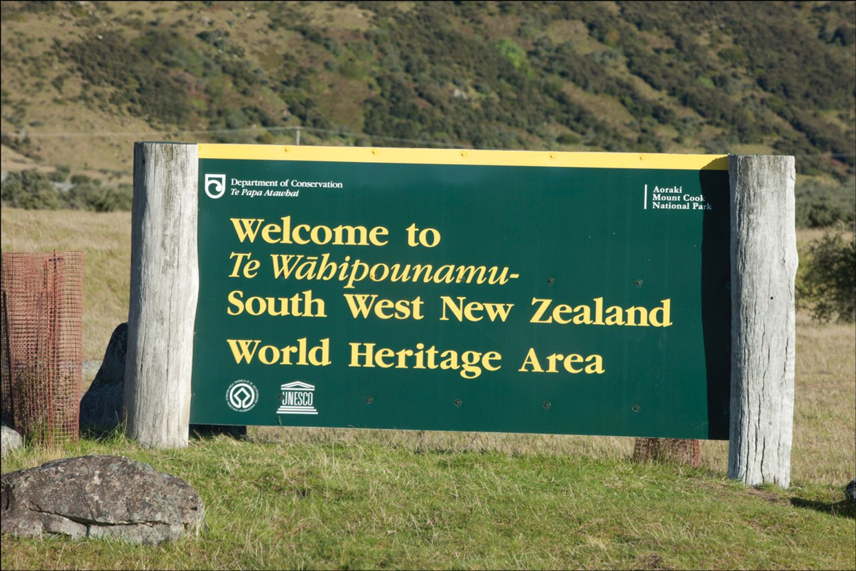 공원입구에는 Mount Cook 국립공원 표지판(오른쪽)이 서있고 유네스코 자연 유산이란 입간판이 눈에 먼저 쏘옥 들어온다.