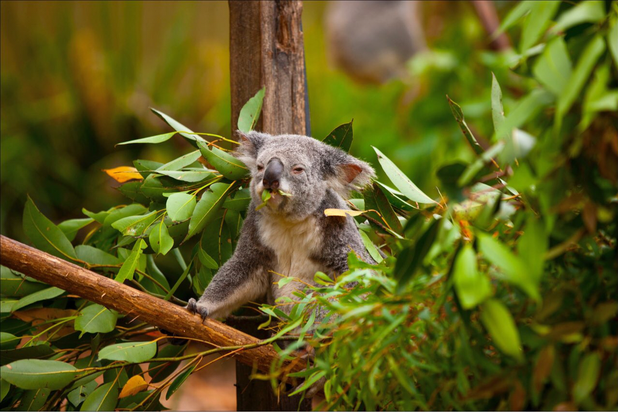 천안의 명물 호두과자처럼 호주의 명물인 코알라( KOALA)를 보았다. 별 영양분도 없는 유칼립잎만 먹기에 활동량이 거의 없이 잠만 잔다. 하루 평균 수면 시간이 20시간이란다. 잠만 자는 이유가 유칼립잎에 들어있는 독성을 희석시키기 위해서 그렇게 잠만 잔단다. 보기에는 조금 멍청해 보이면서도 순진해 보이는 아기 곰인형이다. 연신 유칼립잎을 씹어 돌리고 있다.