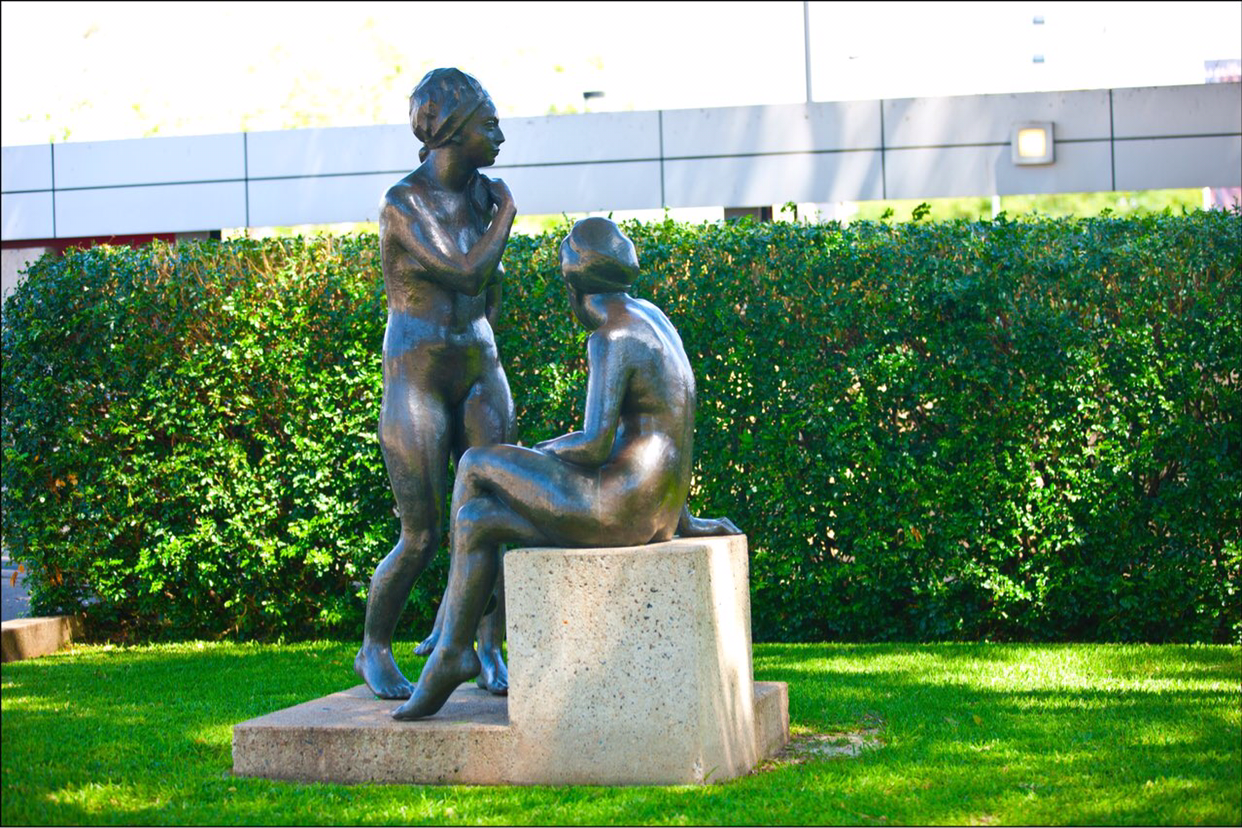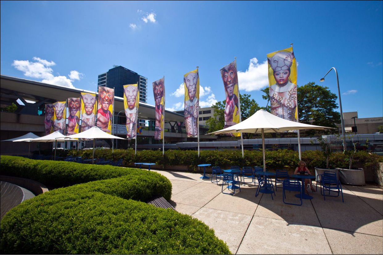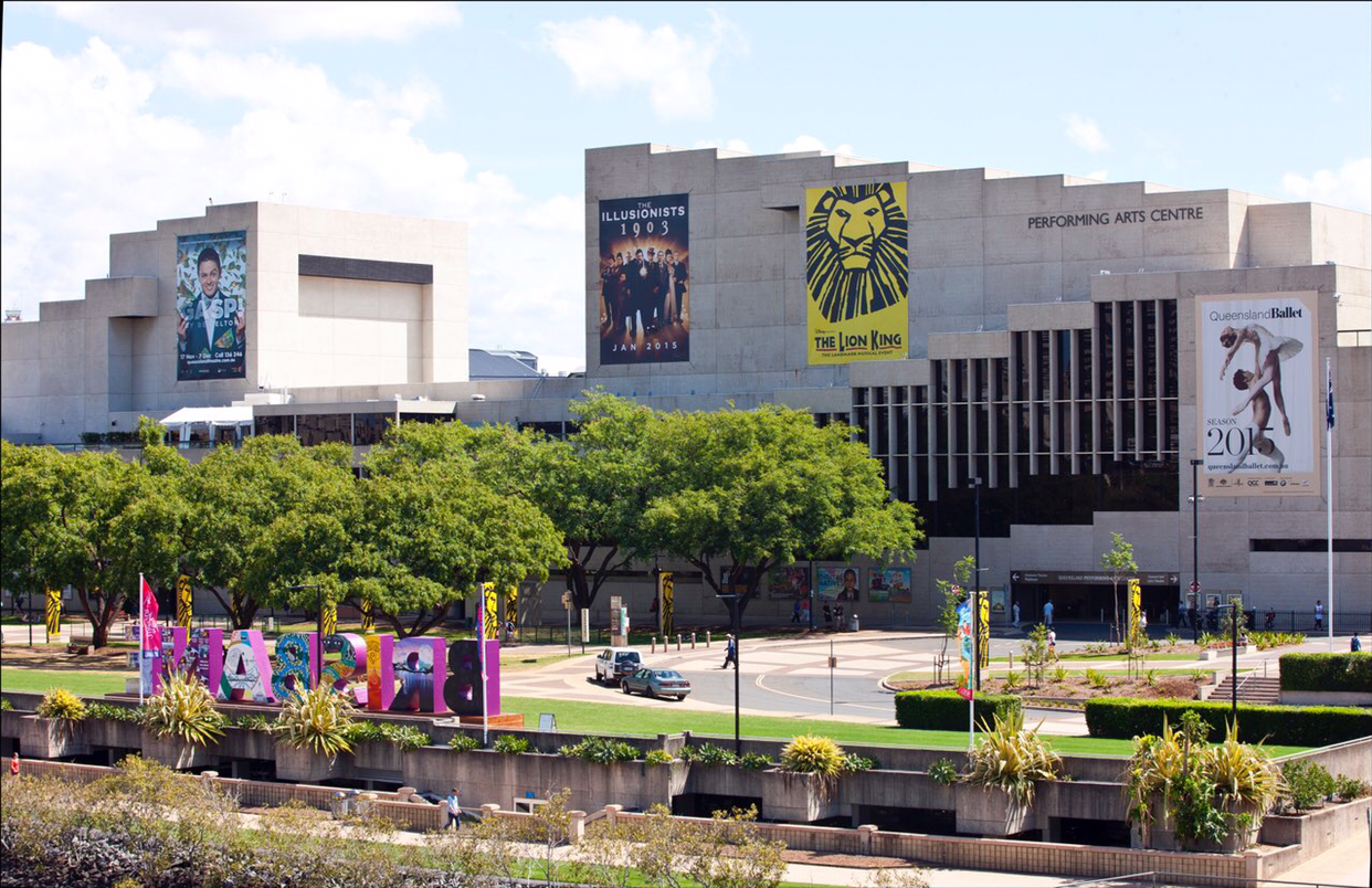 도시 중앙통을 빠져 나와 Victoria Bridge를 걸어서 건너와서 반대편 시내를 바라보니 현대적인 감각으로 하늘을 향해 쌓아올린 높은 빌딩들로 가득찬 도시의 숲이다. 오색 찬란한 깃발이 나부끼는 곳이 퀸즈랜드 문화센터다. 한쪽은 연극, 오페라를 공연하는 극장이고 길 건너편이 박물관, 갤러리, 도서관등이 모여있는 곳이다. 퀸즈랜드 Art Gallery 센터앞 잔디에 있는 청동 조각상은 두 원주민 여자의 나체상을 조각한 것으로 미술관의 분위기를 한껏 띄워주는 것 같았다. 극장벽에는 The Lion King의 포스트가 붙어있어 공연이 있는 모양이다.
