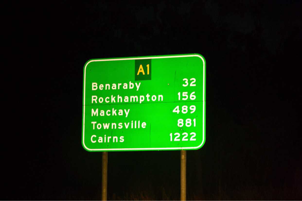 국도 A1을 계속 따라 올라가다 이정표를 보니 Rockhampton까지 아직도 156Km 남았다. 2시간정도 더 달려서 오늘 저녁은 저기서 자고 가야할 것 같다. 시간이 충분한 여행이면 해가 떨어지면 어디가서 자고 아침에 해가 밝게 비치면 다시 길을 떠나는 것이 당연한 것이지만 빡빡한 우리 일정으로는 그렇게 하다가는 몇군데 보다가 날짜가 다되어 다시 시드니로 돌아가야 할 것 같다. 조금 무리한 일정인 줄은 알지만 둘이서 번갈아 가면서 운전을 할 수 있으니 크게 염려할 정도는 아니다. 그런 생각으로 계속 북쪽으로 달려 밤늦게 Rockhampton 근처에 도착했다.-Jh-
