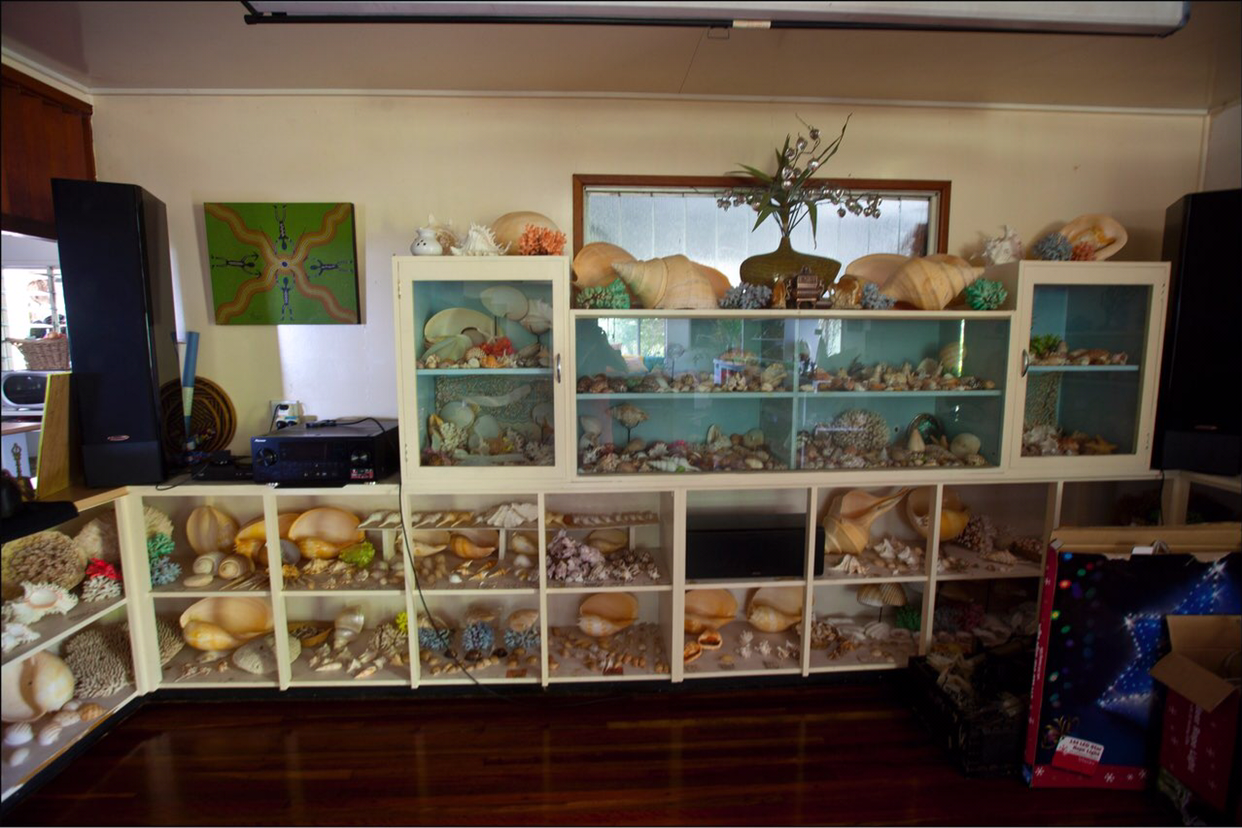 The Shell House 란 입간판이 뭐냐고 물어 보았더니 이 집을 4년전에 구입해서 섬으로 들어왔는데 전 집주인이 각종 조개로 만든 기념품을 파는 가게였다는 것이다. Shell로 만든 기념품 구경시켜 준다길래 집안으로 들어가 보았다. The Shell House 내부는 말 그대로 리빙룸 4방 벽면이 SHell 제품으로 가득 차 있다. 전 집주인이 집을 팔면서 가지고 있던 Shell 제품을 전부 다 주고 갔다고 한다. 자기도 이제 관리하기가 힘들어 곧 퀸즈랜드 주립대학에 몽땅 기증하려고 한다고 한다. (염치없게도 몇 개 달라는 말이 목구멍에서 고추 잠자리처럼 뱅뱅 맴돌다 결국 나오지 못했다. 난 대머리가 아니라서 결국 못했을까) 진열해 놓은 것들이 전부 다 완제품으로 가격표까지 붙어 있다. 진짜로 탐나는 제품은 산호로 만든 것들인데 가격도 만만치 않을 뿐더러 크기도 크서 배낭 여행자들에게는 적합치 않다하더라도 기념품으로는 더할 나위가 없을 것 같았다. Shell은 여기 섬에서 나는게 아니고 전세계에서 조개껍질 재료를 수입해서 여기서 가공해서 제품으로 만들어서 팔았다고 한다.