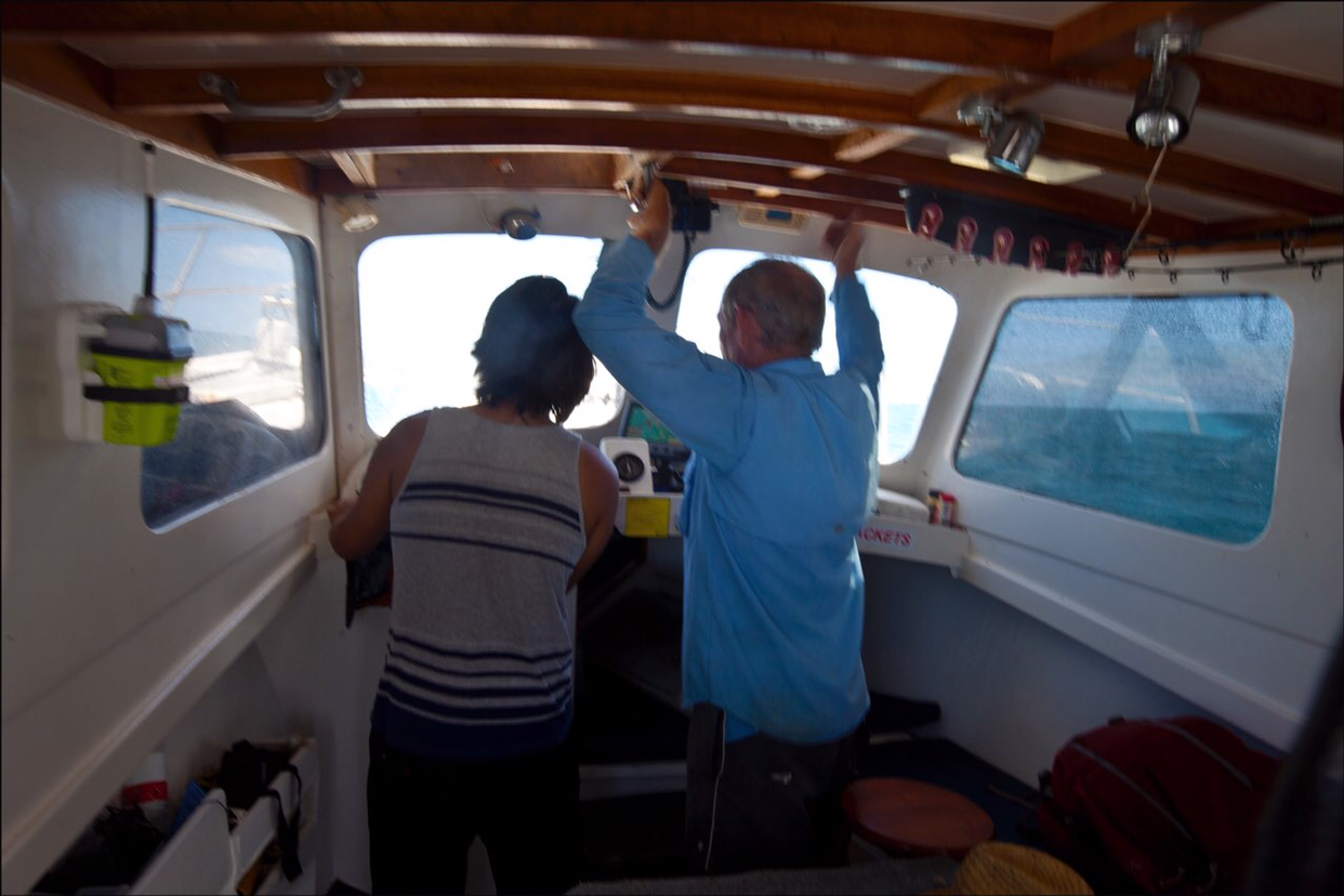 40불(One Way)이면 80불인데 50불정도 주면 될 것이라하니 어찌 좋지 않을손가. 아마 여기서부터 벌어진 상황은 그 때 실황으로 카톡을 통해서 친구들에게 중계되었다. 적어도 내 셀폰이 물에 빠져 통신 두절이 될 때 까지 문자와 사진으로 실시간으로 송신하였다. 정오경 배주인과 그의 친구 부부를 만나서 배를 타고 MARINA를 출발했다. 배낭을 매고 걸어가는 모델K의 발걸음이 힘차게 느껴진다. 작은 횡재라 할까? 가만 생각해보니 이렇게 주선을 해준 그 사무실 여직원에게 고맙다는 말을 충분히 못 한 것같아 미안한 생각이 들었다. 내일 나가면서 감사를 다시 한번 표시해야 할 것 같다.